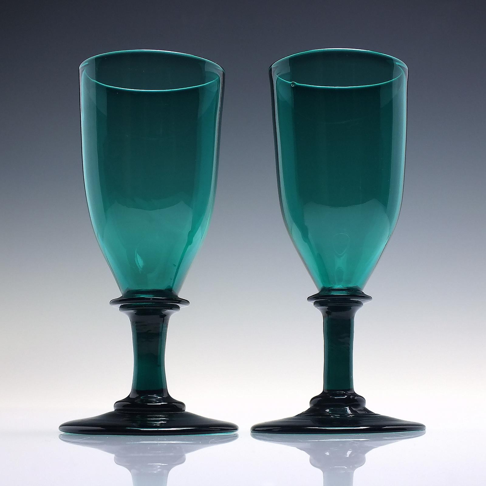 Rare Pair of Georgian Emerald Green Ale Glasses c.1820