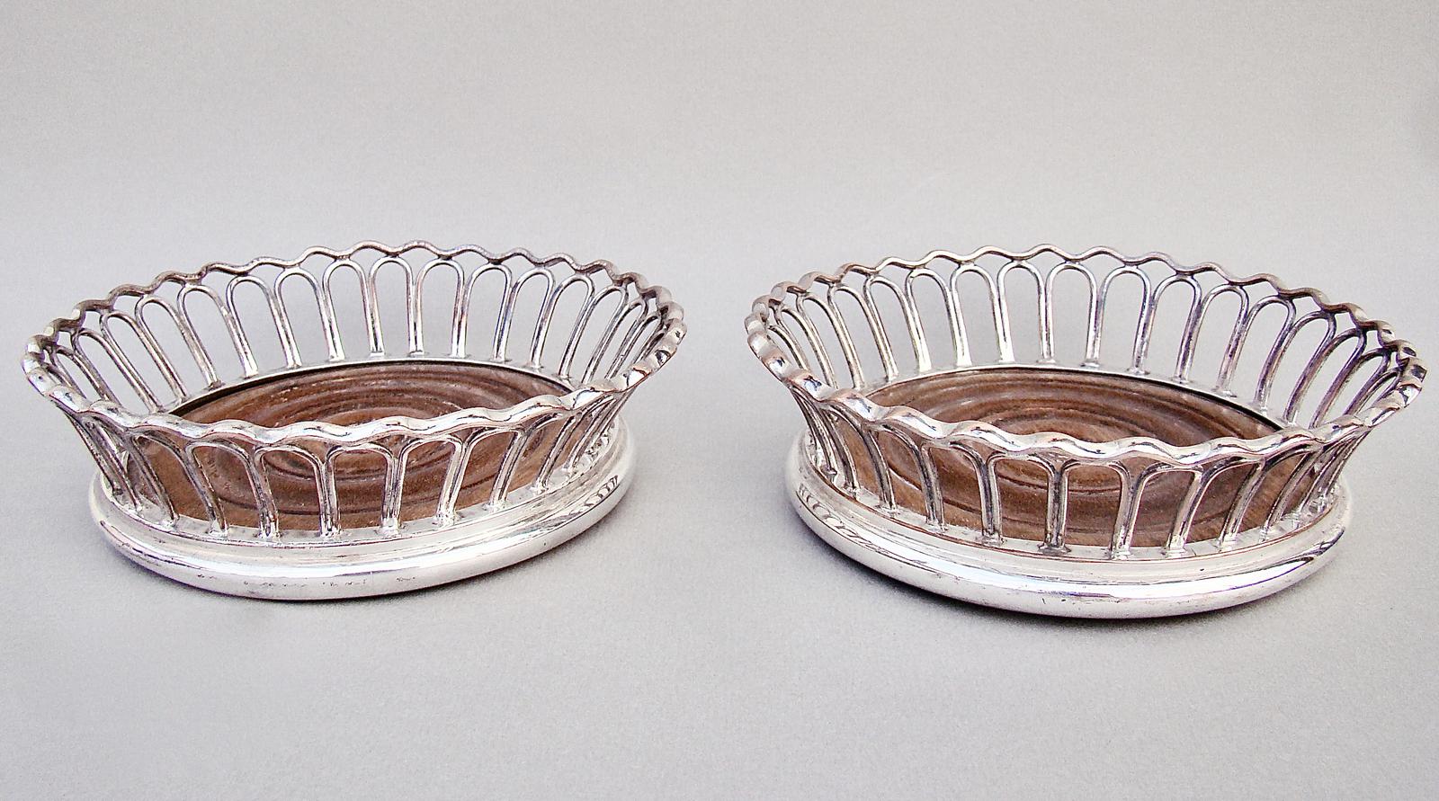 Rare Pair of Georgian Silver Plate Wirework Wine Coasters c.1795