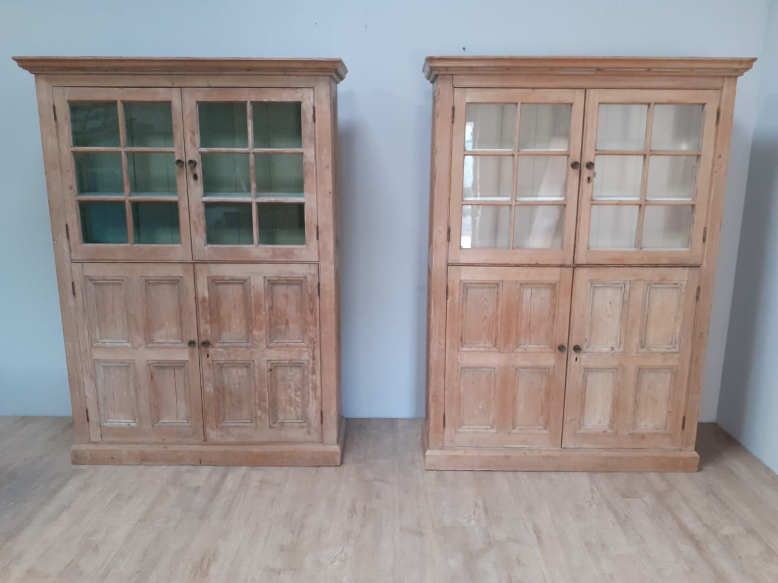 Rare Pair of Glazed Pine Kitchen Cupboards Dating Mid 19th Century