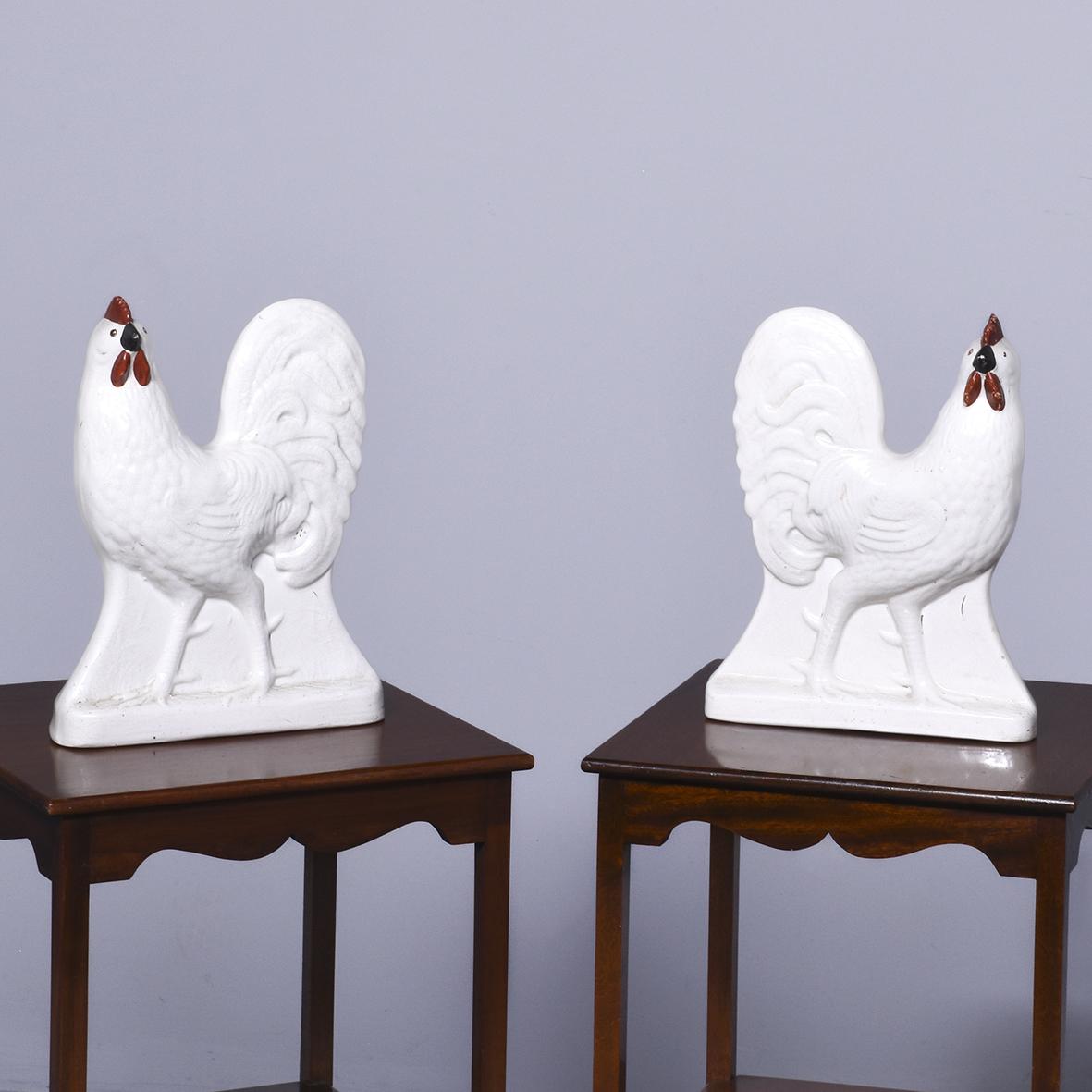 Rare Pair of Large Sized Staffordshire Pottery Cockerels