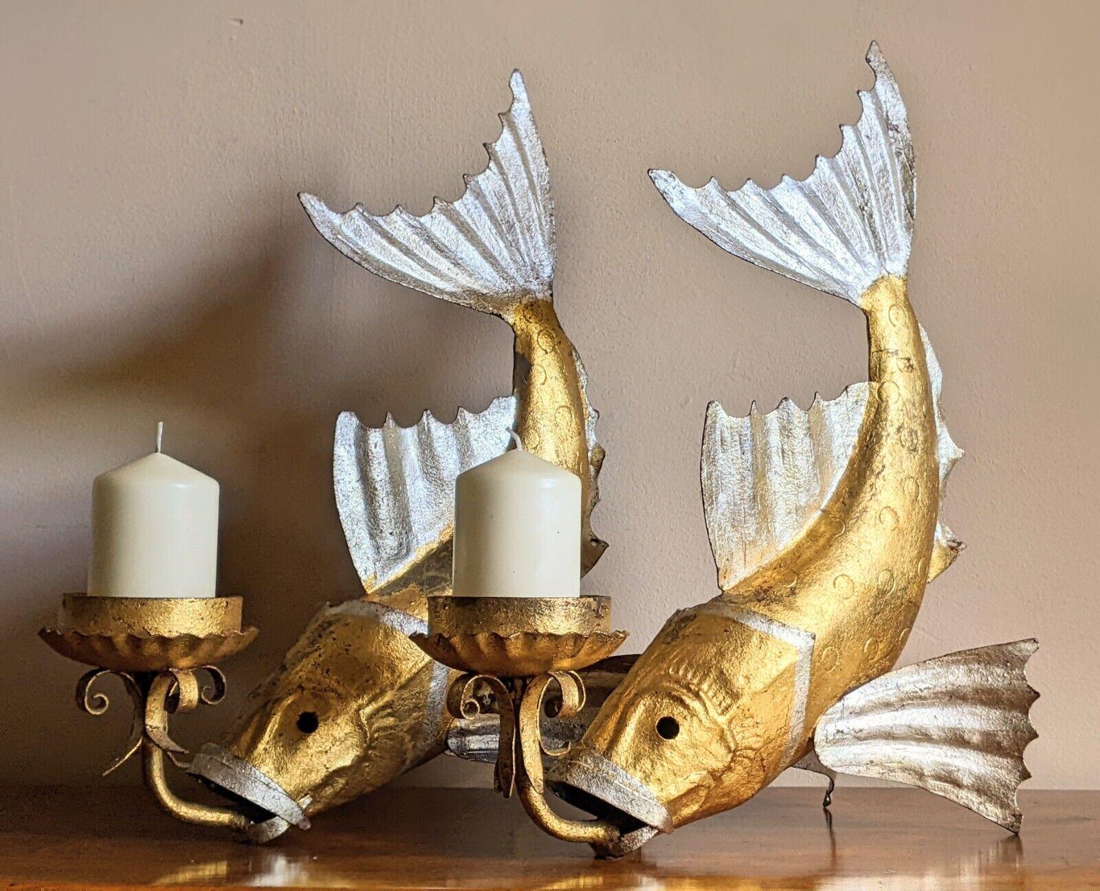 Rare Pair of Large Spanish Gilded Fish Candelabra