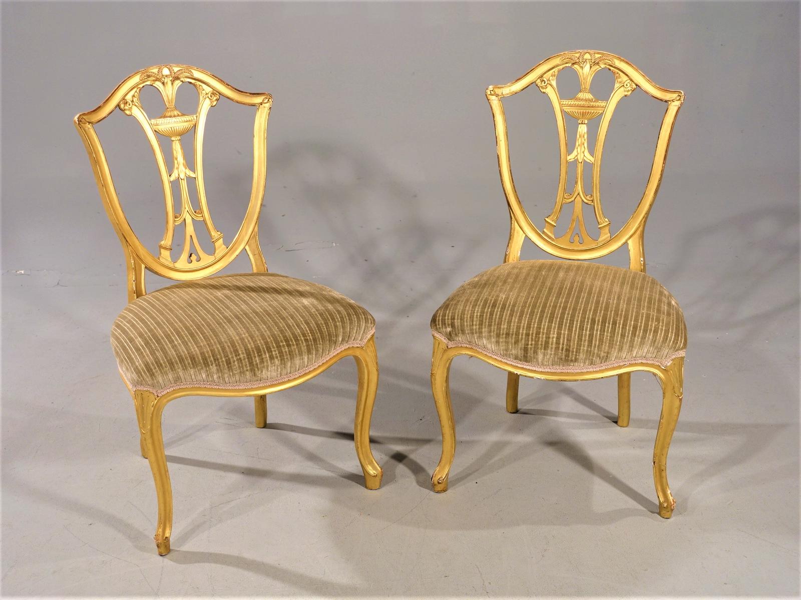 Rare Pair of Late 18th Century French Hepplewhite Gilded Side Chairs