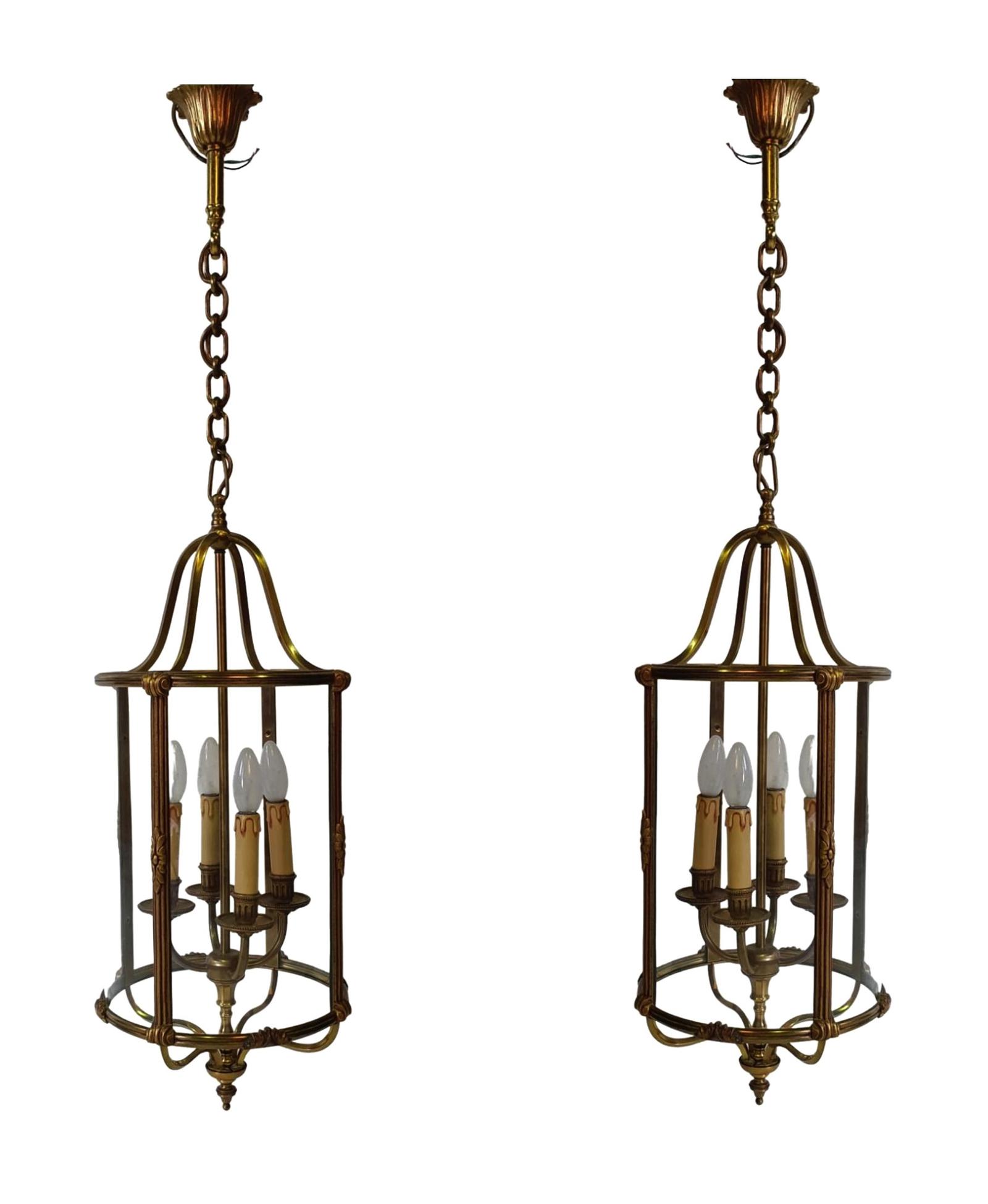 Rare Pair of Mid 20th Century Brass Lanterns