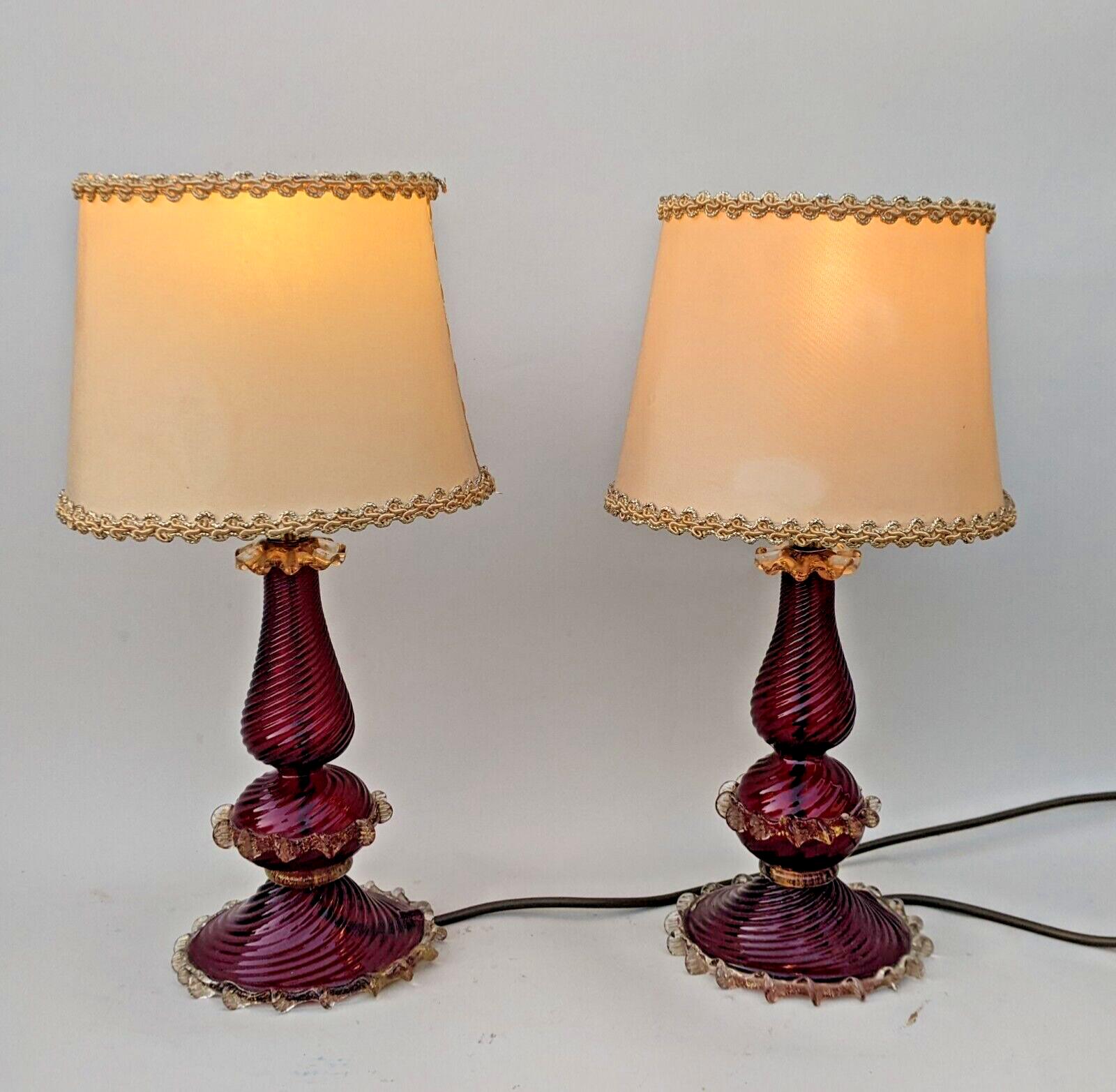 Rare Pair of Murano Glass Lamps Original Shades