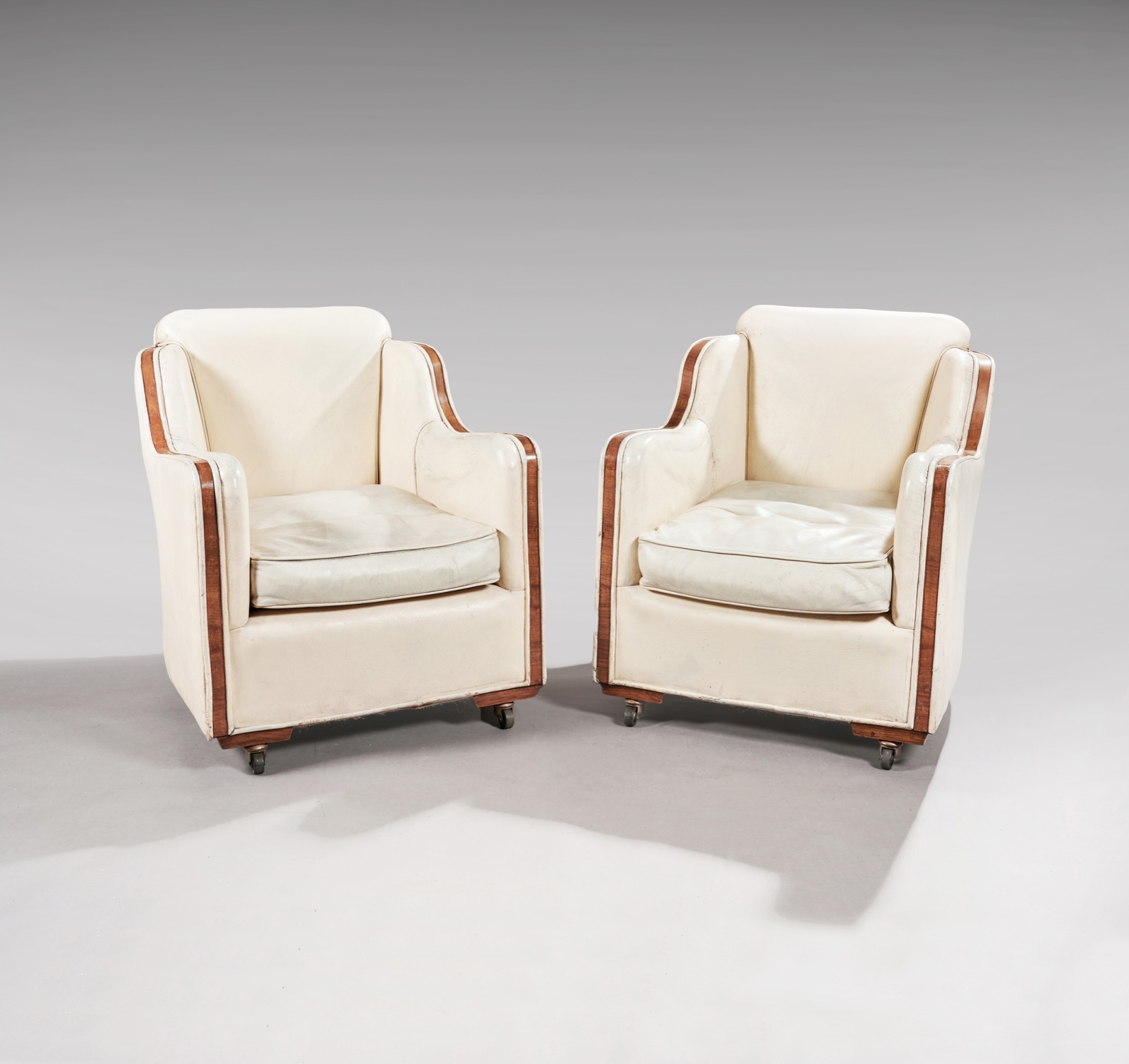 Rare Pair of Original Walnut Epstein Art Deco Leather Armchairs (1 of 1)