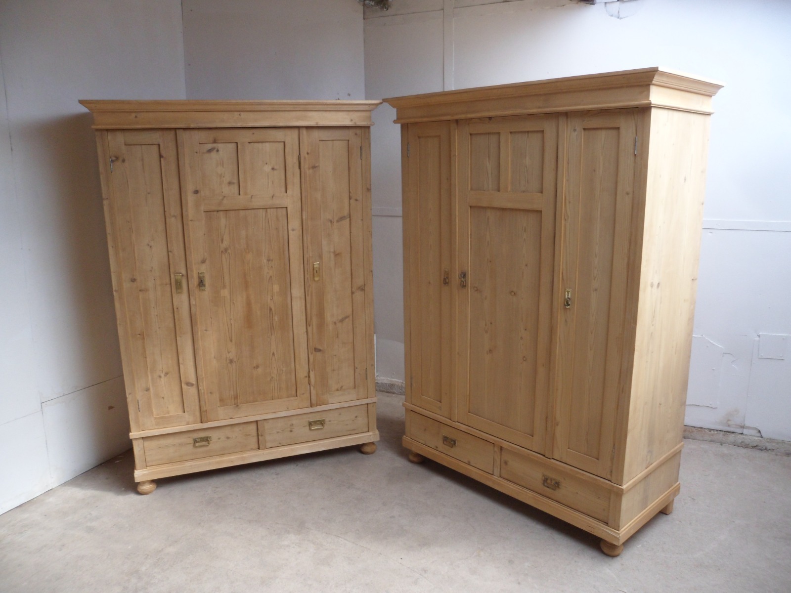 Rare Pair of Pine Triple Knockdown Wardrobes to wax / paint c.1920
