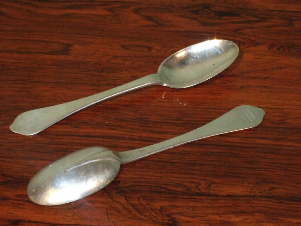 Rare Pair of Silver Dognose Spoons by Richard Bayley, London c.1716