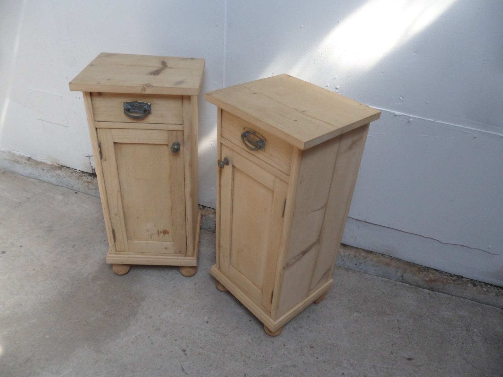 Rare Pair of Victorian Antique Pine Small Bedside Cabinets to wax / paint