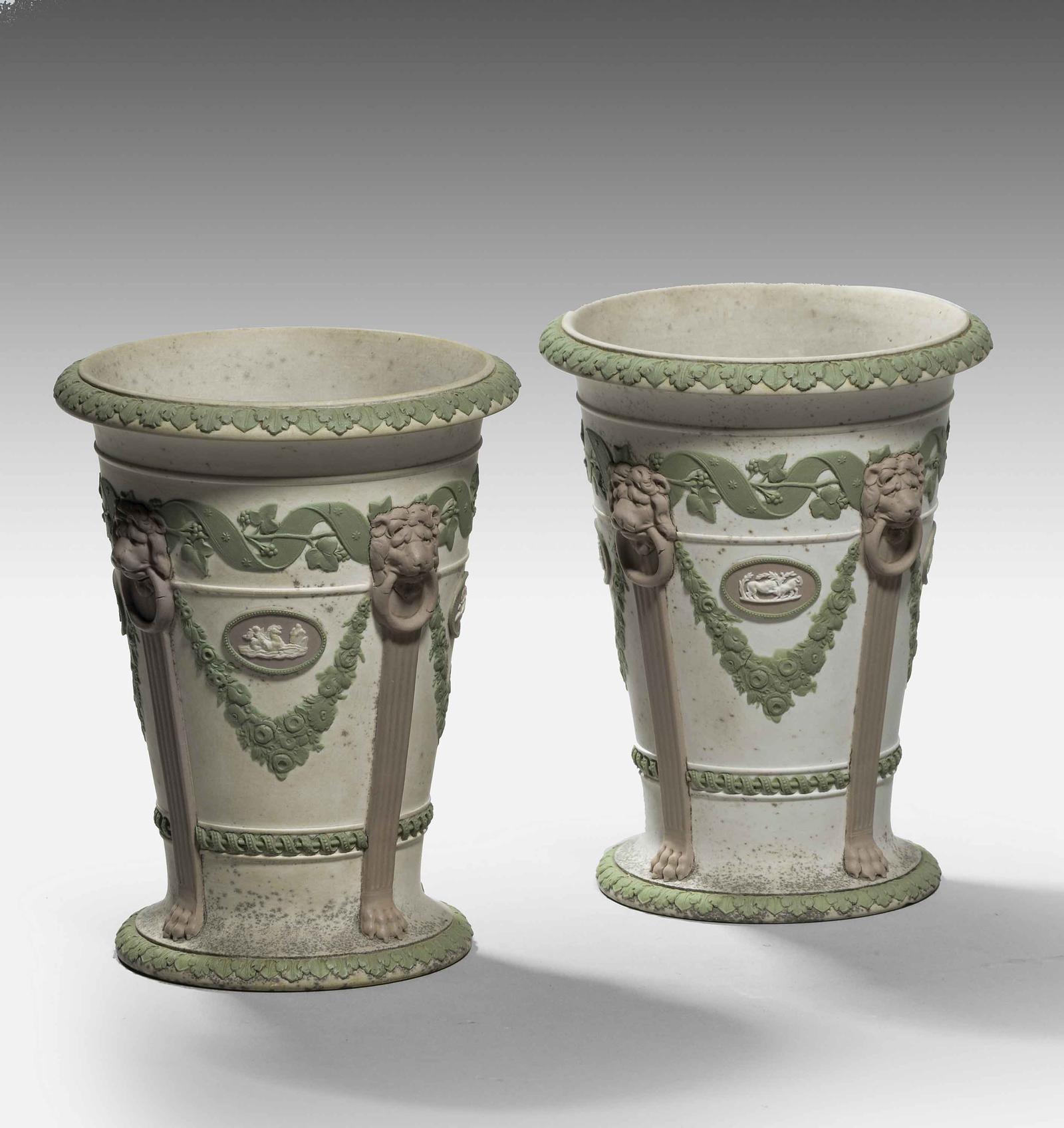 Rare Pair of Wedgwood Three - Coloured Trumpet Shaped Vases
