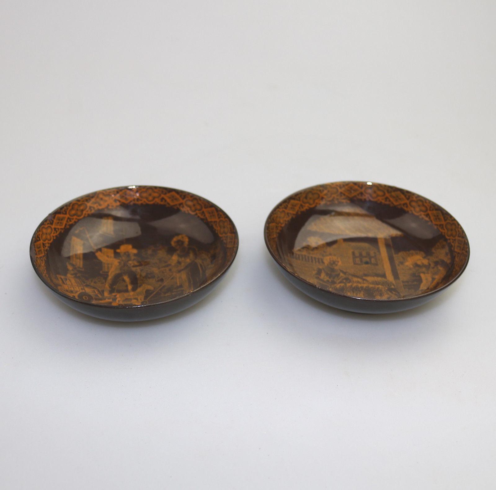 Rare Pair of Yellow Printed Brown Portobello Ware Pottery Saucers c.1810