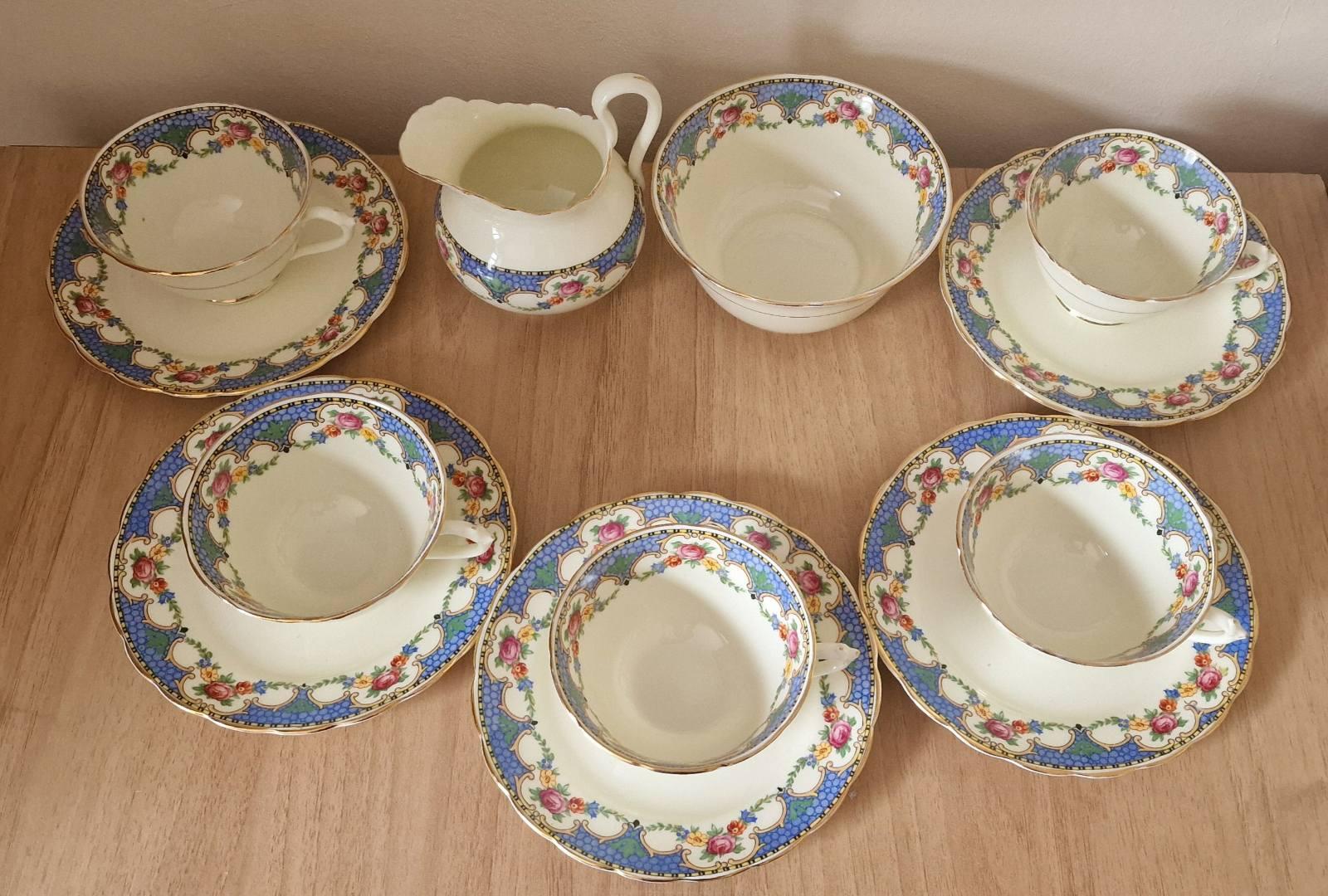 Rare Pattern Vintage 13pc Tuscan China Tea Set, c.1936