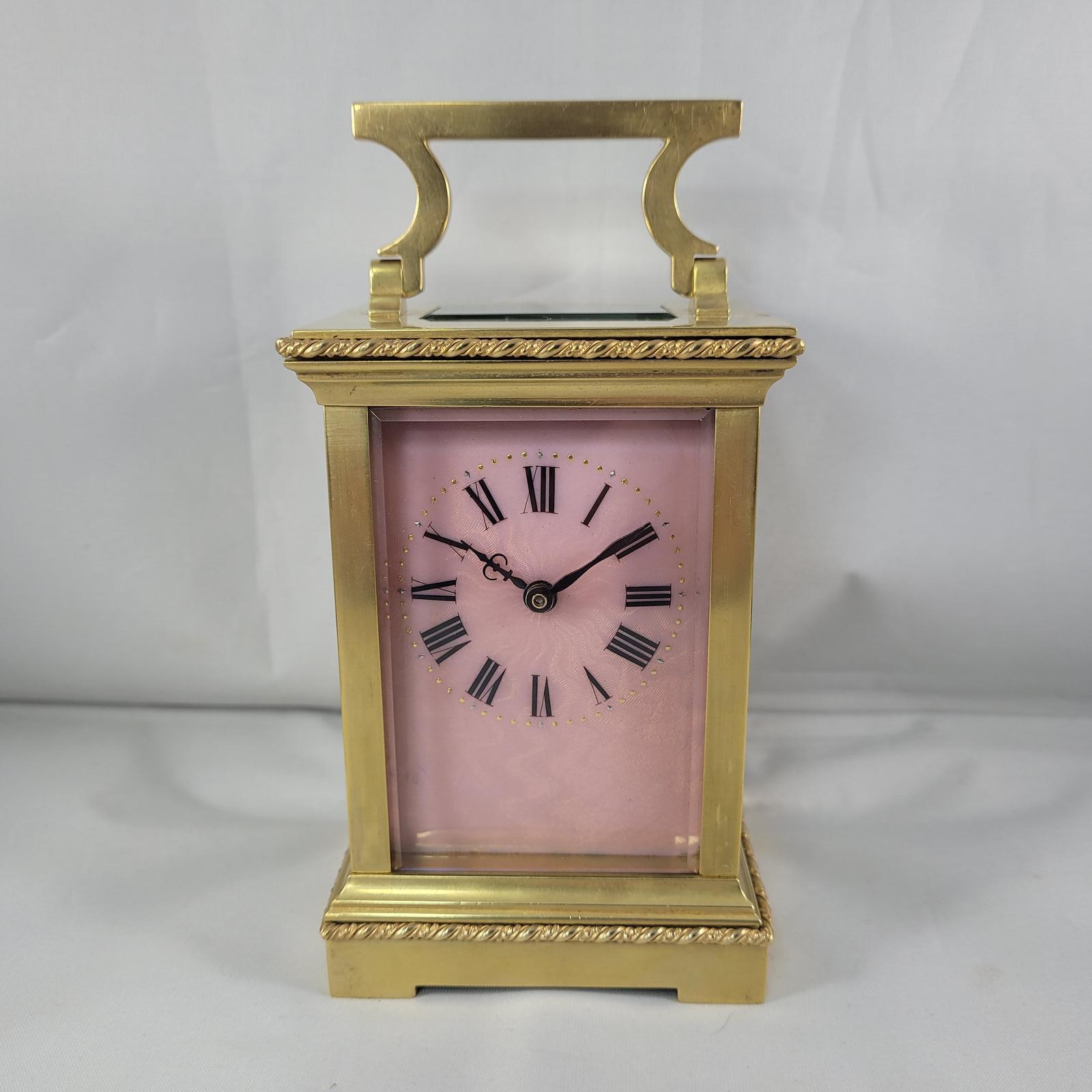 Rare Pink Guilloche Dial 8 Day Carriage Clock