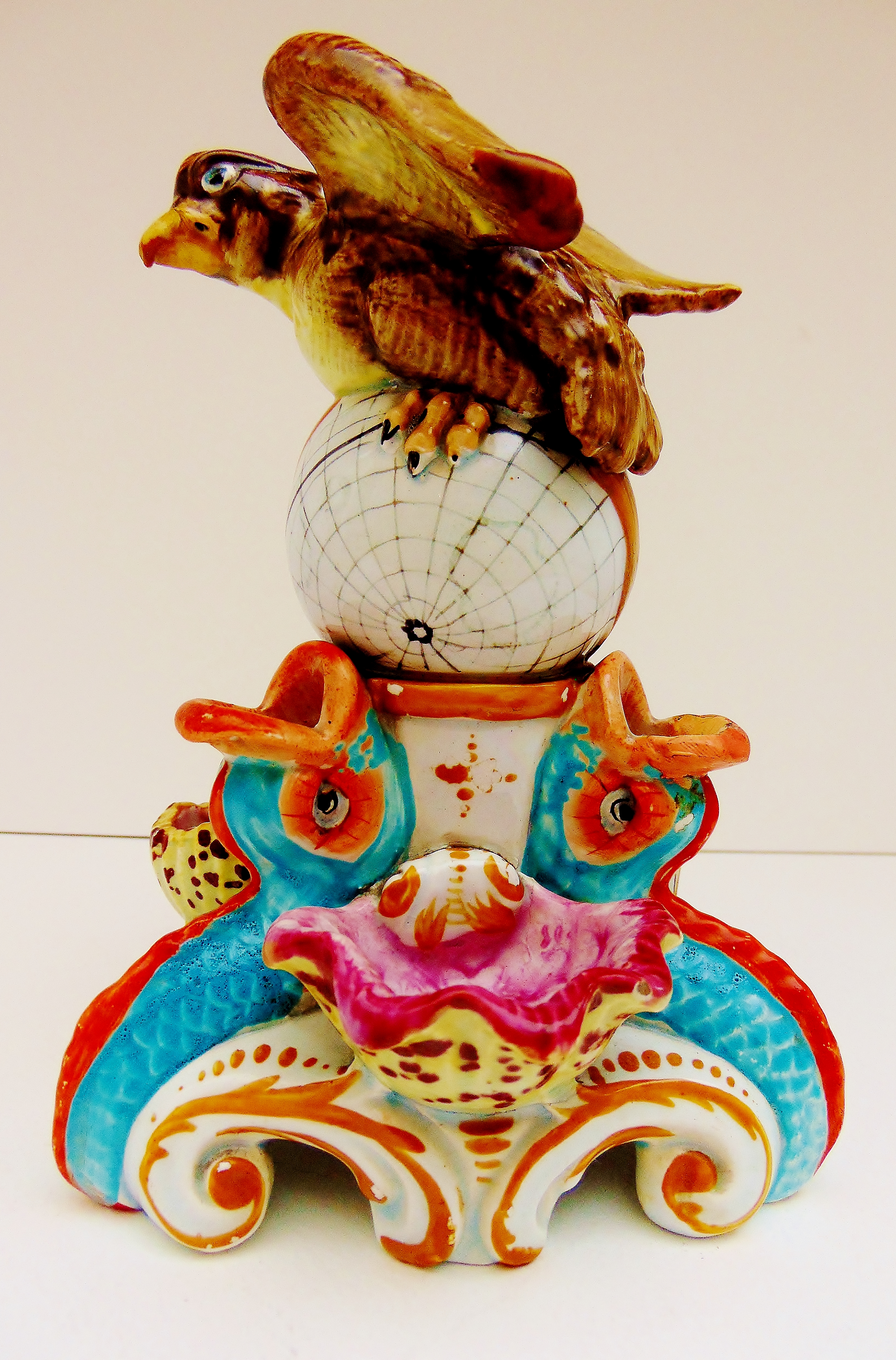Rare Porcelain Inkwell with Bird of Prey On a Globe
