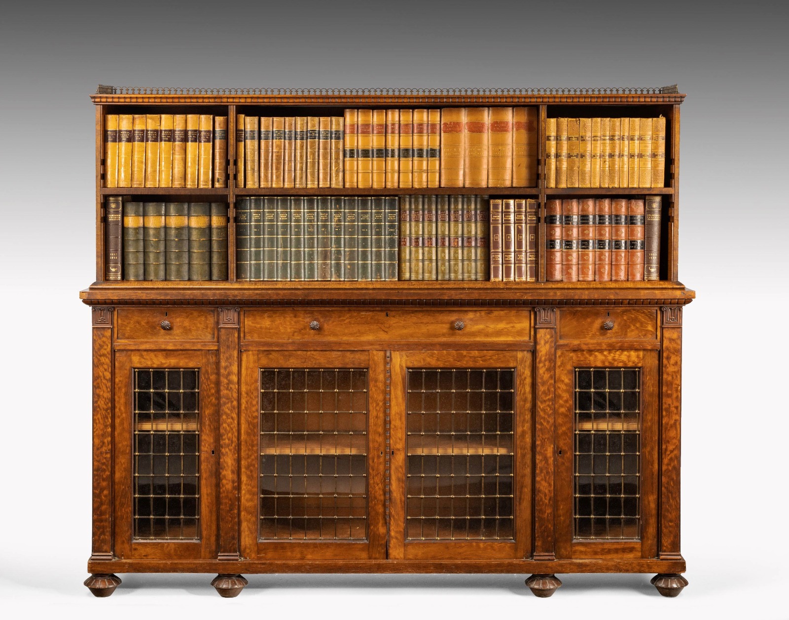 Rare Quilted Mahogany Regency Period Low Bookcase