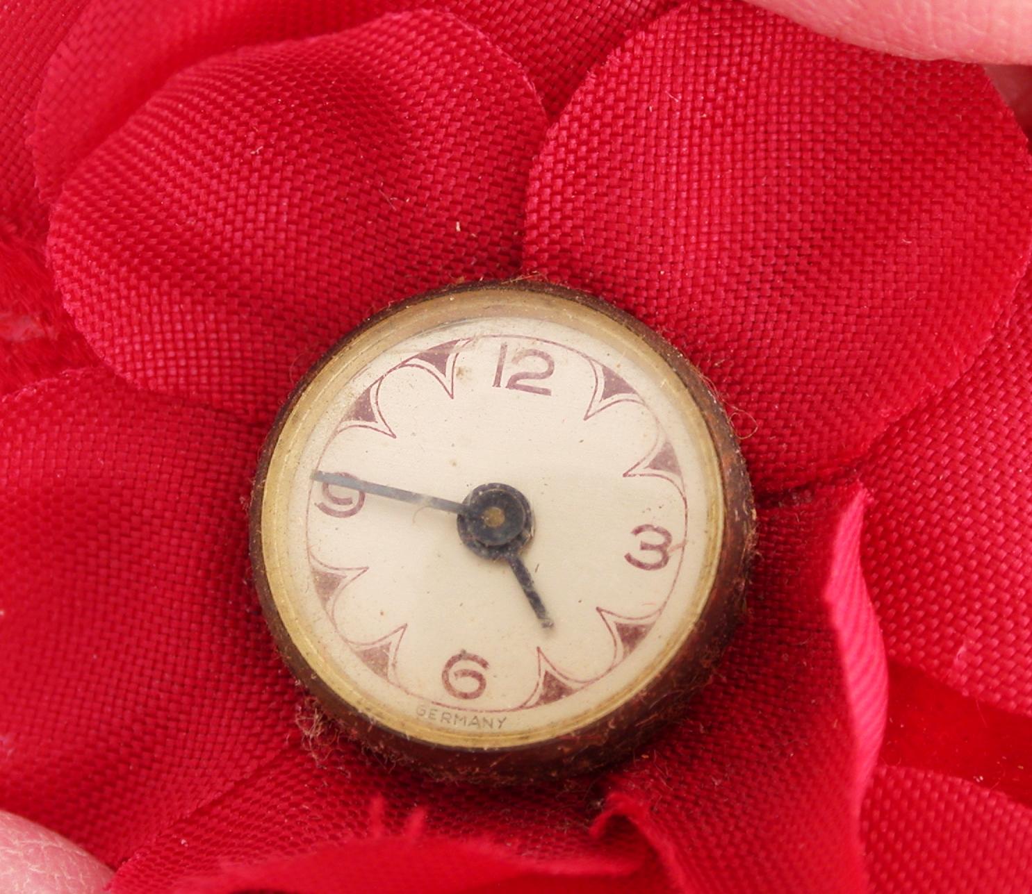 Rare Red Felt Handmade Petal Flower Clock in Original Box Germany 1930 (1 of 6)