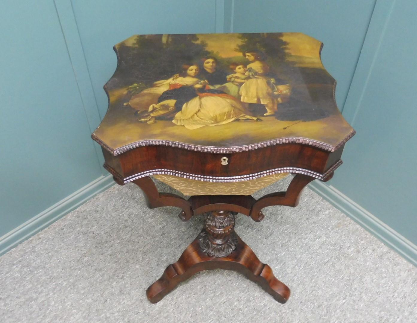 Rare Regency Painted Top Sewing Table