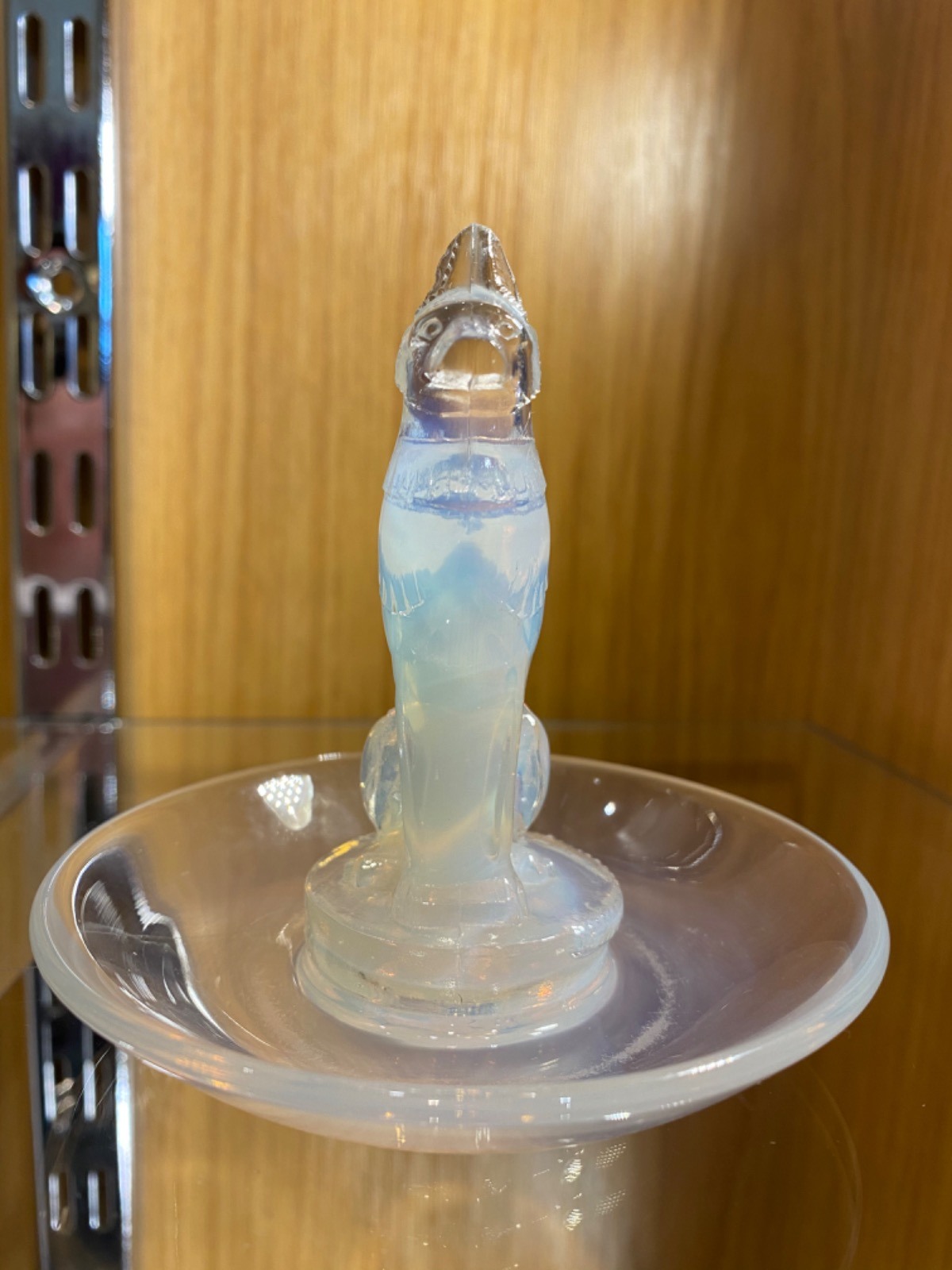 Rare Rene Lalique “Chien” Dog Mounted Opalescent Glass Cendrier, Ring Dish c.1920