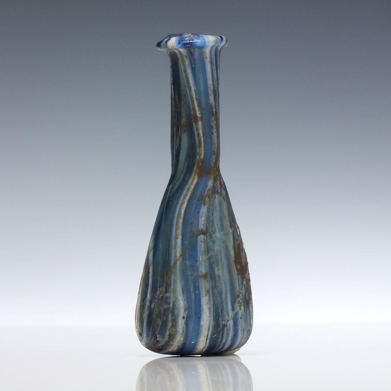 Rare Roman Marbled Blue & White Glass Unguentarium 1st Century CE
