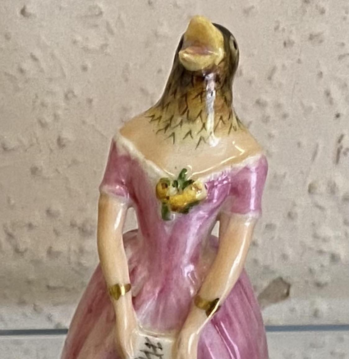 Rare Royal Worcester Porcelain CANDLE-SNUFFER – ‘Jenny Lind’ (Confidence) in pink, 1923