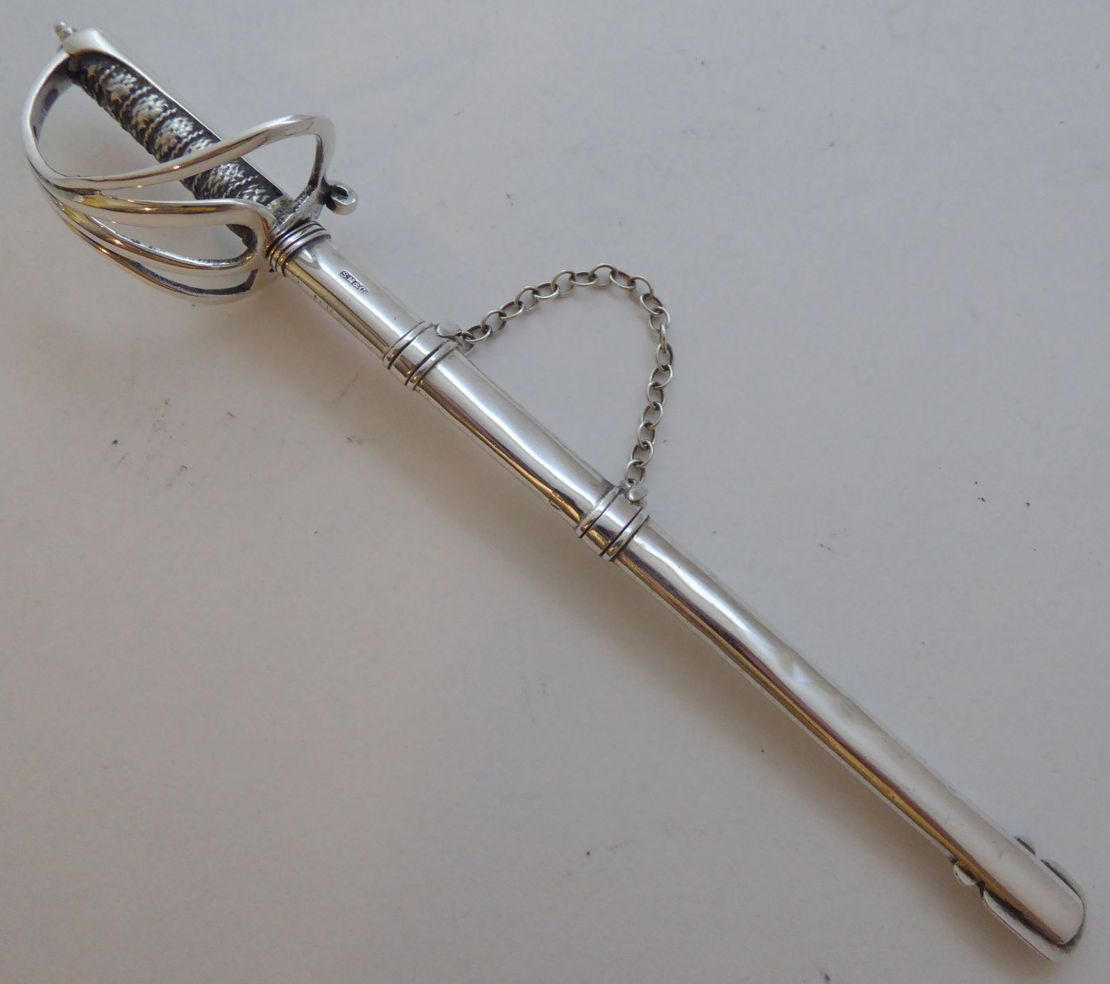 Rare Sampson Mordan 1896 Officers Sword Solid Silver Desk Letter Opener
