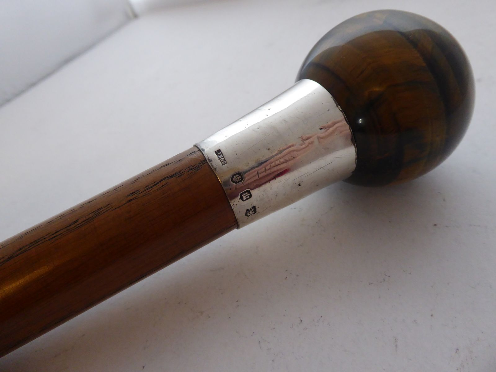 Rare Scottish 1917 Walking Stick Cane Hallmarked Solid Silver Pommel Oak Shaft