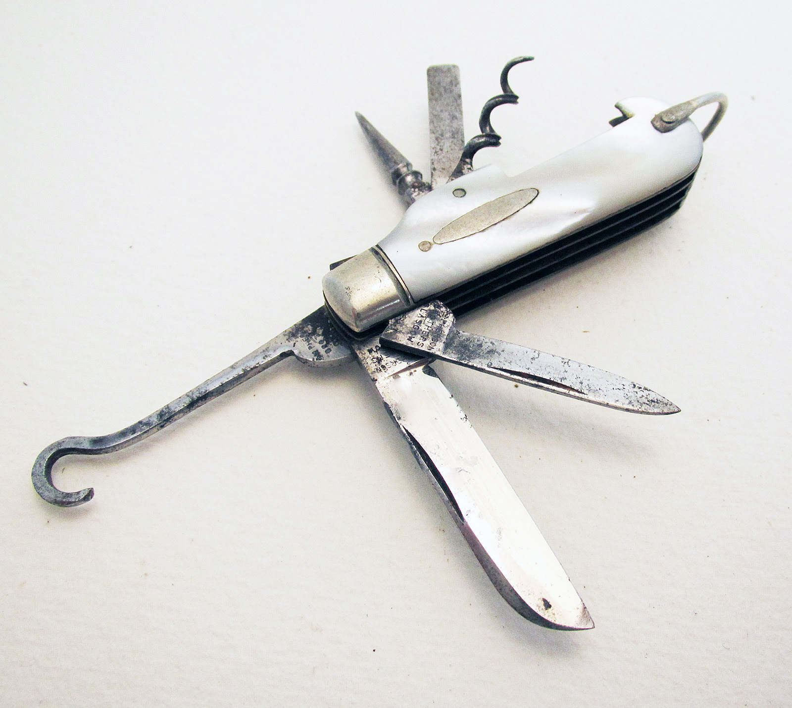 Rare Scottish Multi Tool Miniature Sportsman Mother of Pearl Mop Folding Pocket Lobster Fruit Penknife. Mcpherson Brothers Glasgow