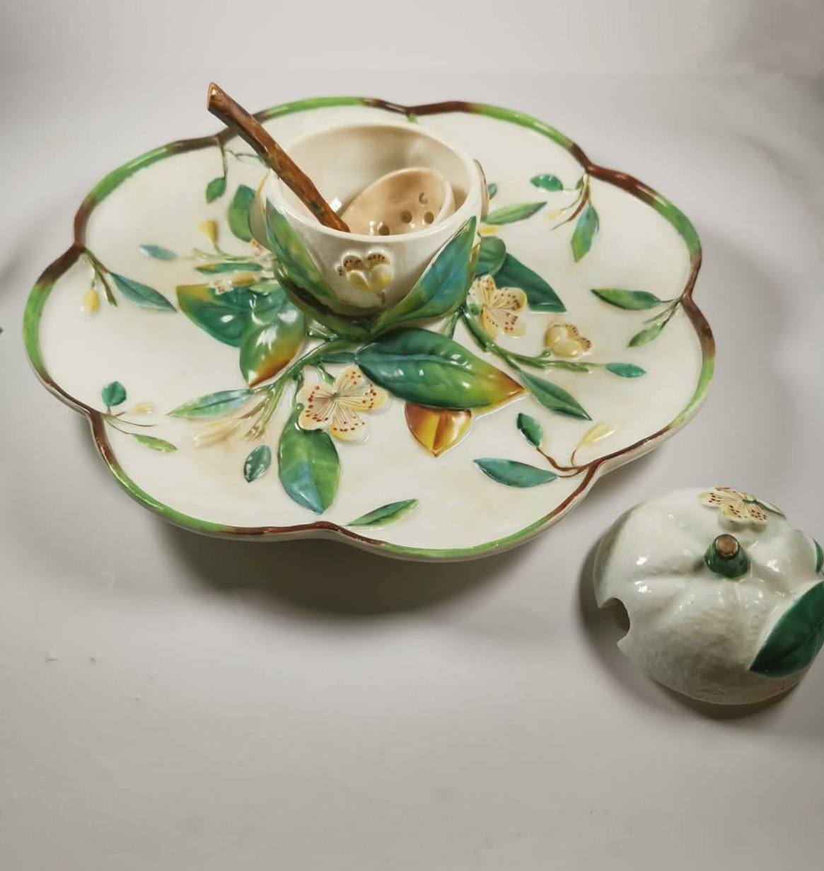Rare Serving Dish with Lid on Octagonal Platter with Very Unusual Ladle
