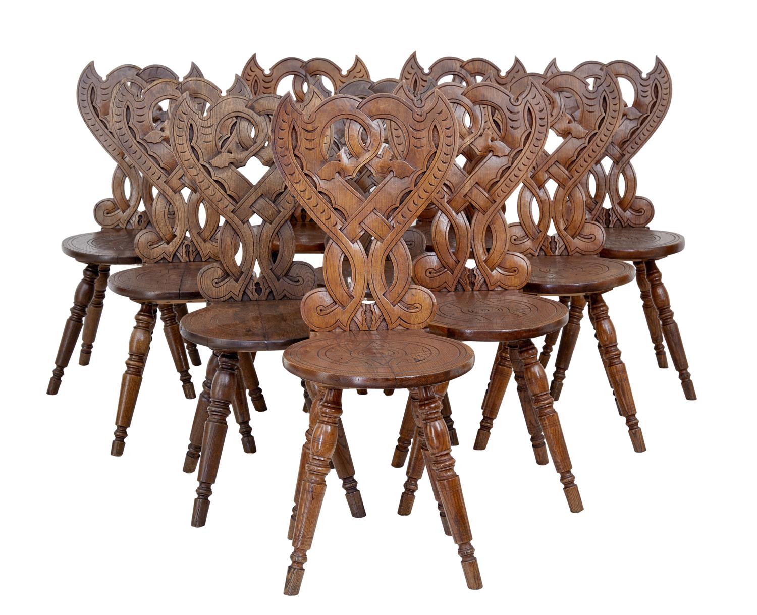 Rare Set of 10 Carved Oak 19th Century Hall Chairs (1 of 7)