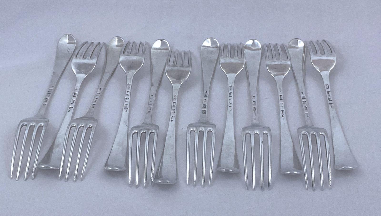 Rare Set of 12 Antique Silver Old English Pattern Table Forks Made in 1781