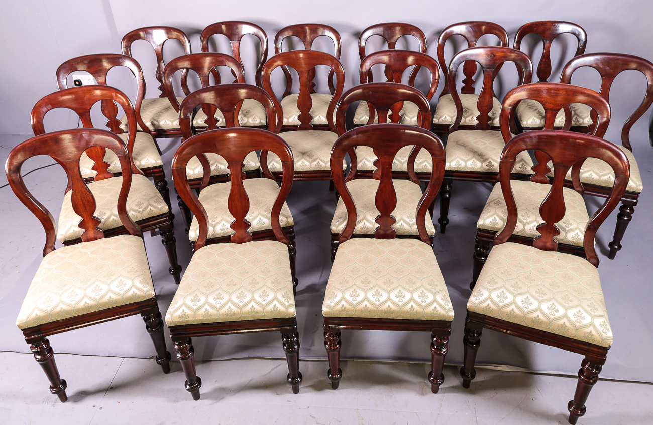 Rare Set of 20 Victorian Balloon Back Dining Chairs