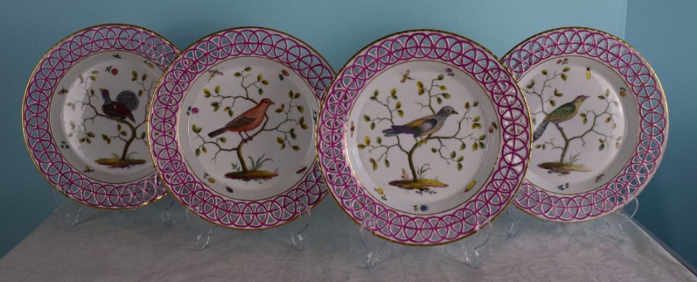 Rare Set of 4 18Thc Limbach Ornithological Bird Dessert Plates