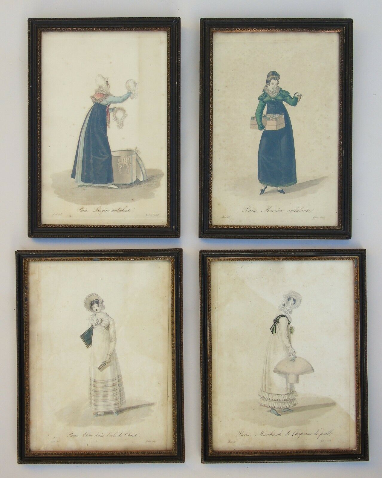 Rare Set of 4 Antique French Fashion Engravings