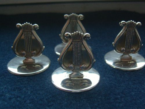 Rare Set of 4 Silver Menu Holders with Harp Design