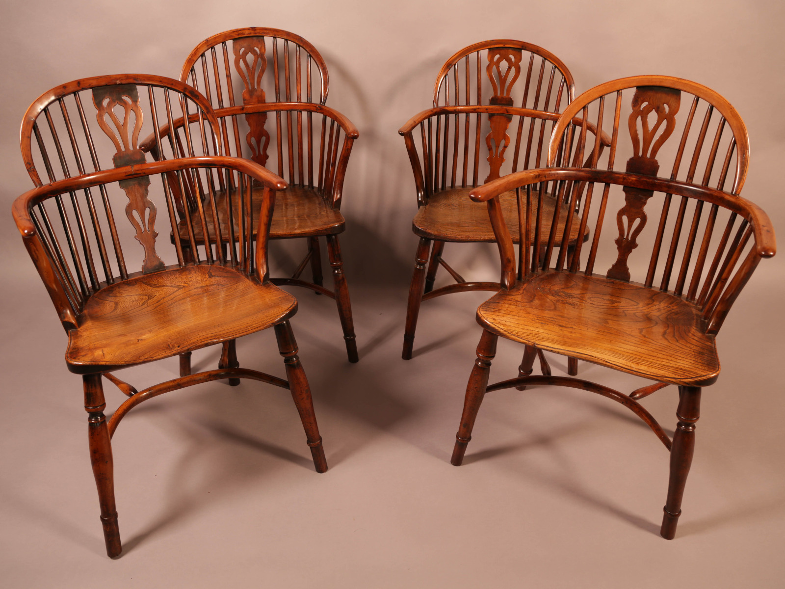 Rare Set of 4 Yew Wood Windsor Chairs Wheatland Retford