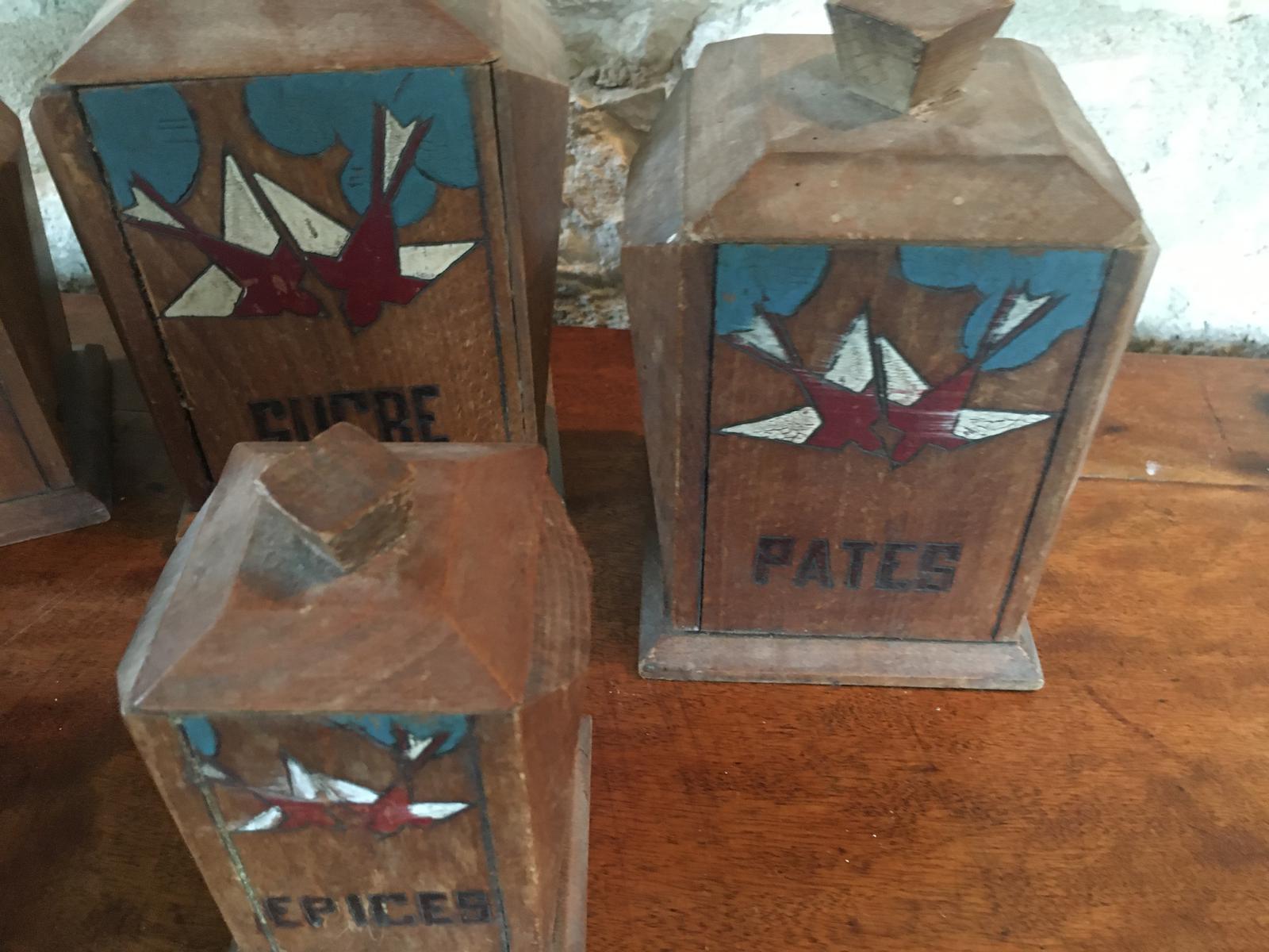 Rare Set of 5 French Oak Art Deco Graduated Storage Jars