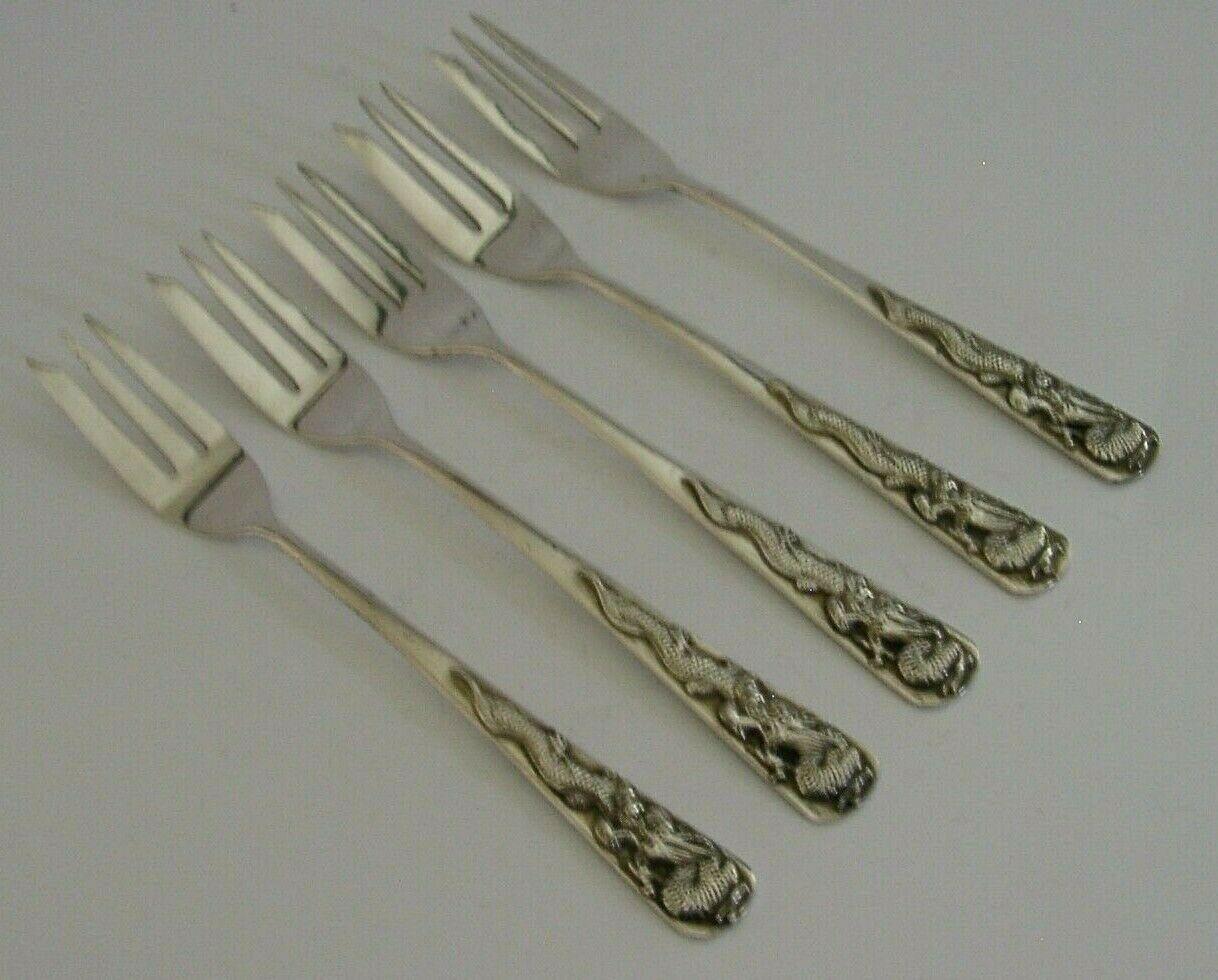 Rare Set of 5 Solid Silver Chinese Export Silver Cake Forks Wang Hing 95g Antique c.1900