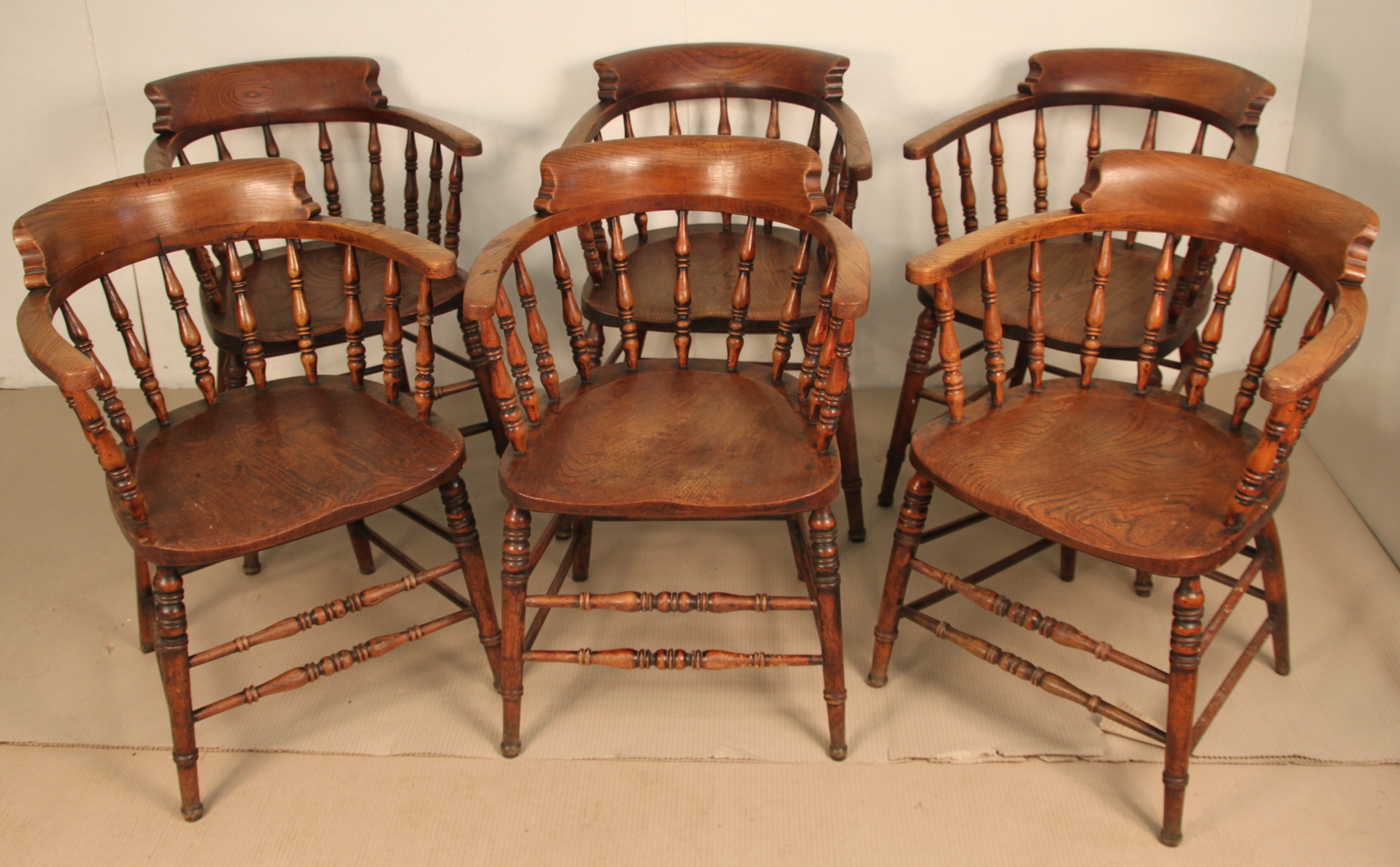 Rare Set of 6 Victorian Smokers Bow Armchairs c.1880 (1 of 1)