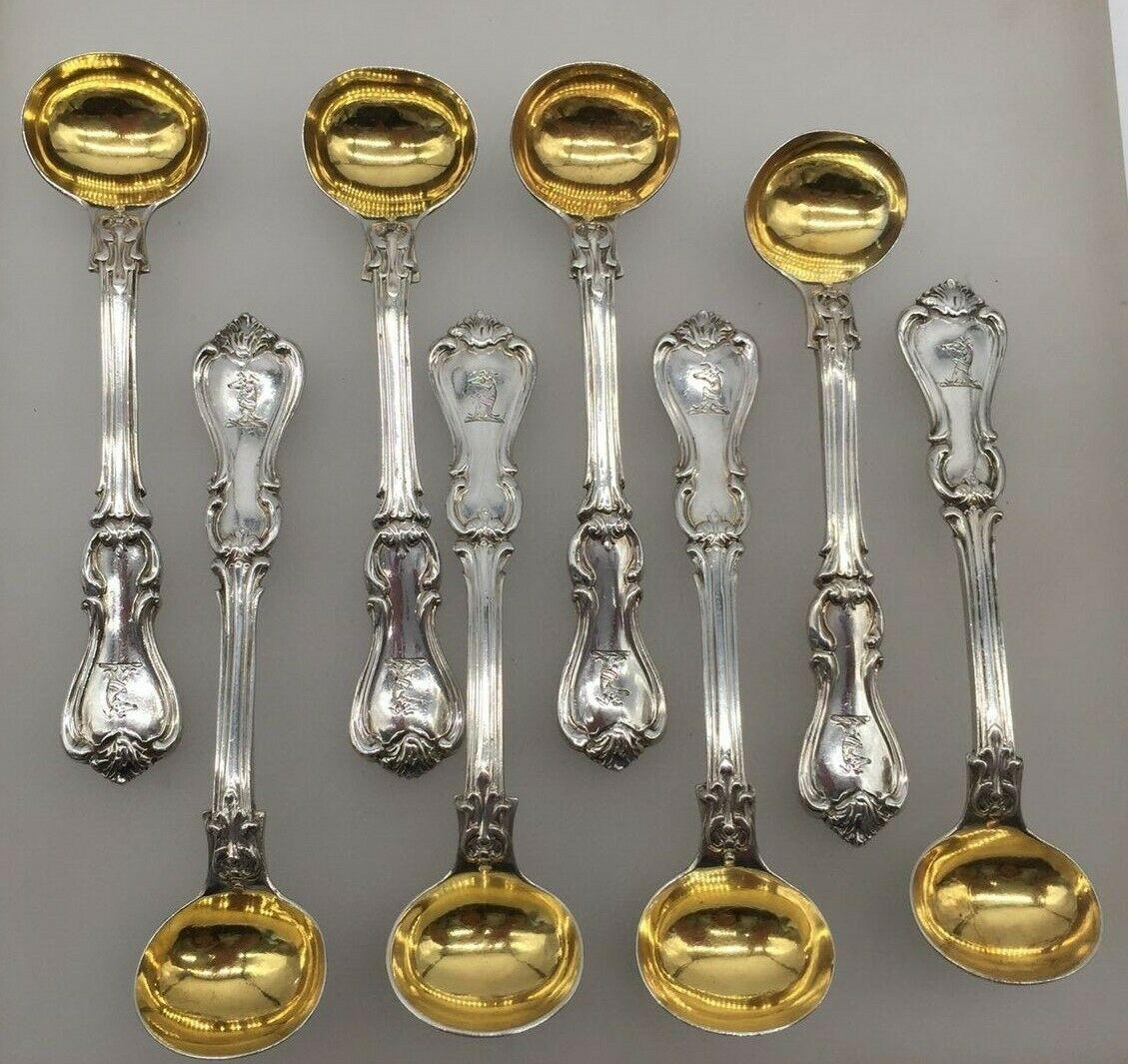 Rare Set of 8 Albert Pattern Heavy Silver Salt Condiment Spoons Ladles 1840/41