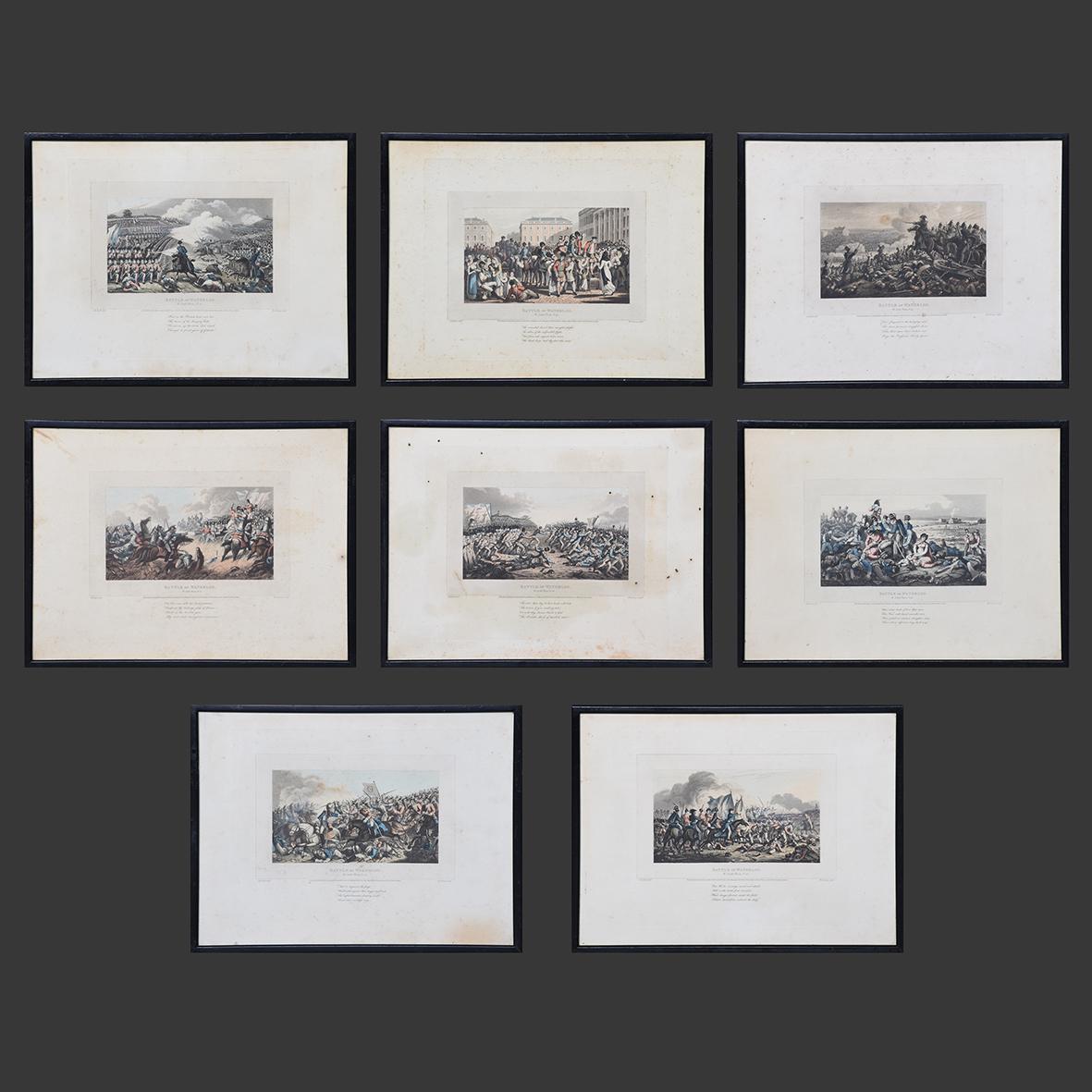 Rare Set of 8 Coloured Battle Waterloo Prints