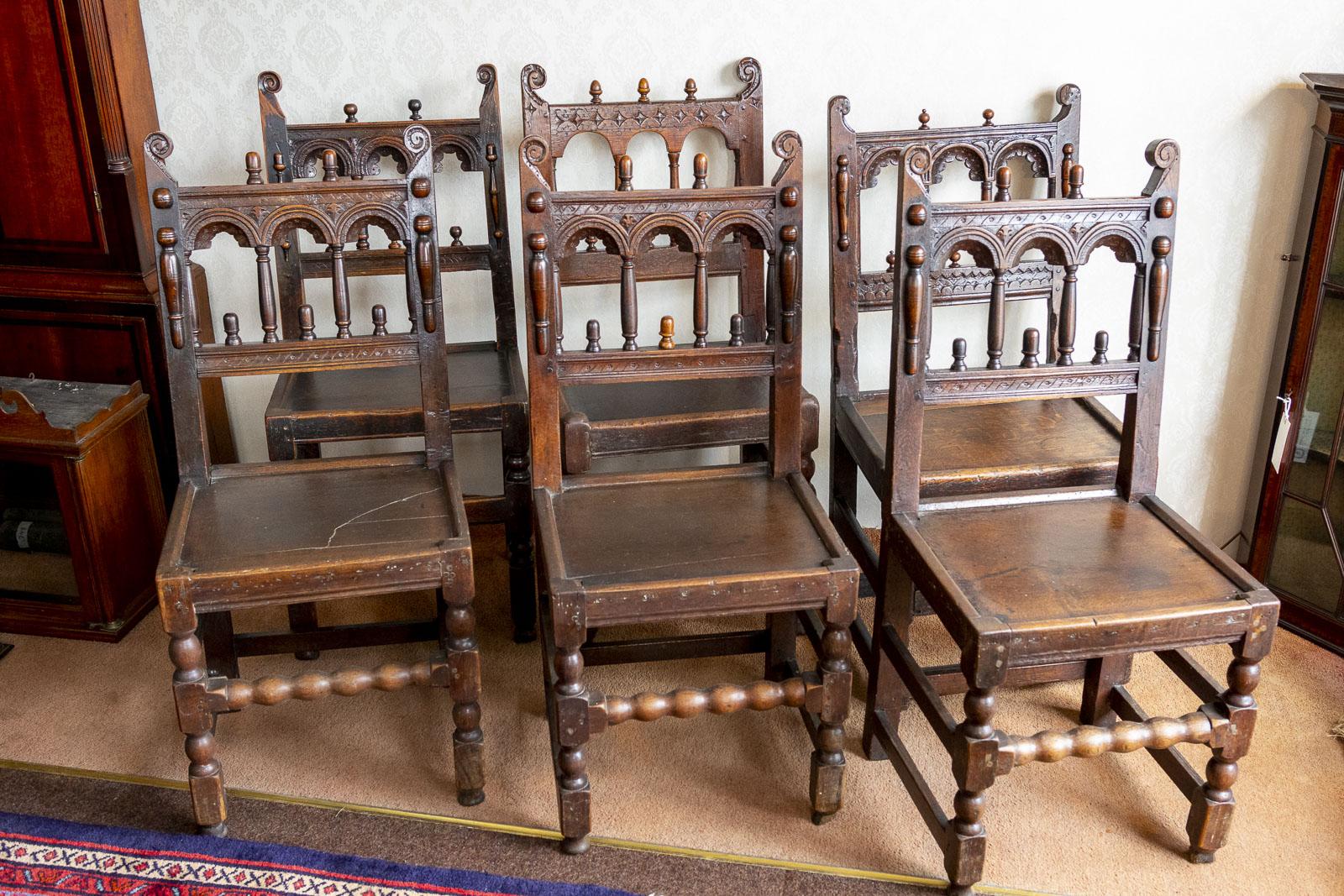 Rare Set of Six Matched Oak Lancaster / Yorkshire Side Chairs