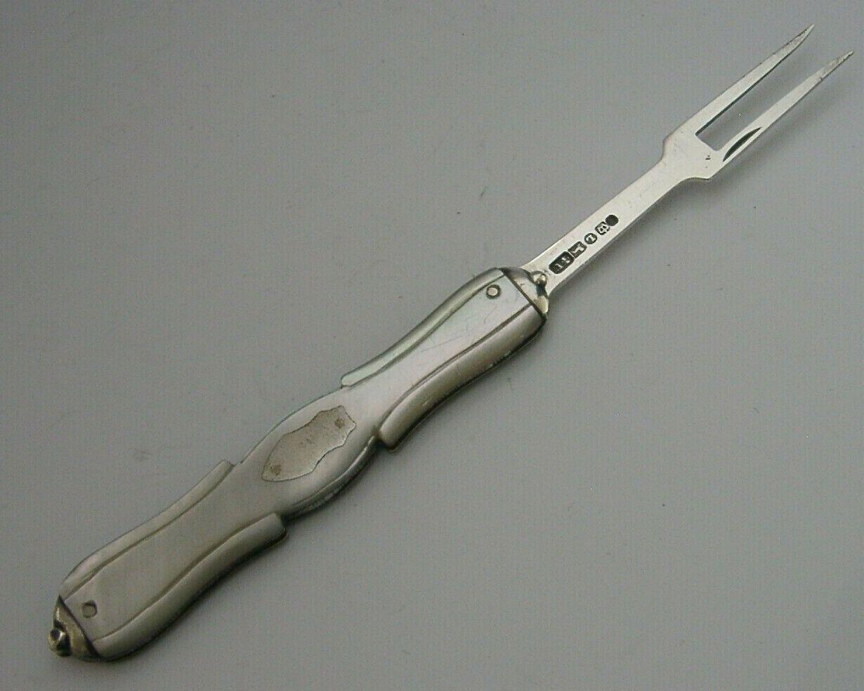 Rare Shape Victorian Sterling Silver Mother of Pearl Folding Fork 1854 Antique