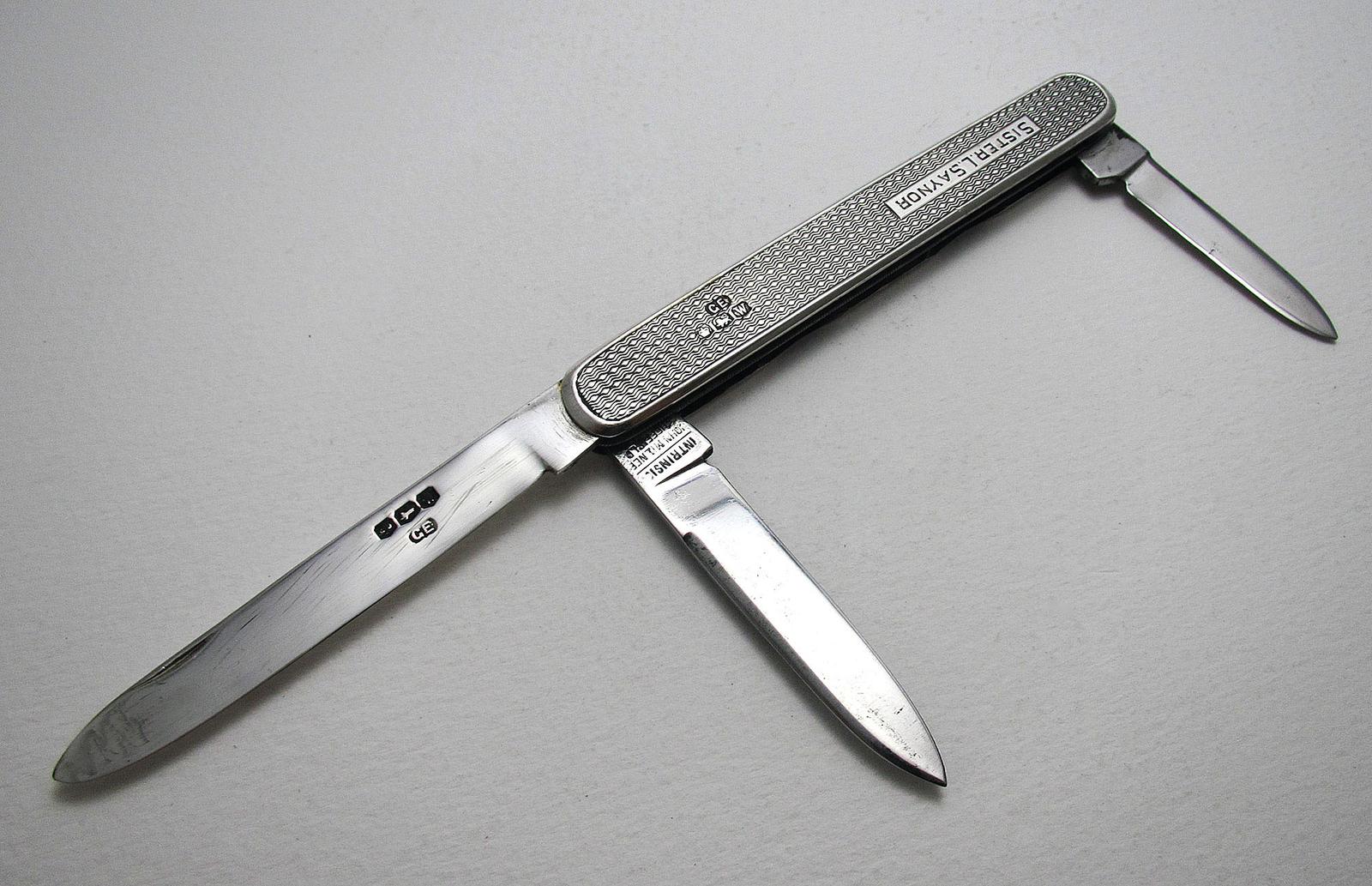 Rare Sheffield 1939 Vintage Art Deco Sterling Silver Stainless Steel, Multi Bladed Pocket Pen Fruit Knife Folding Penknife, Intrinsic John Milner.