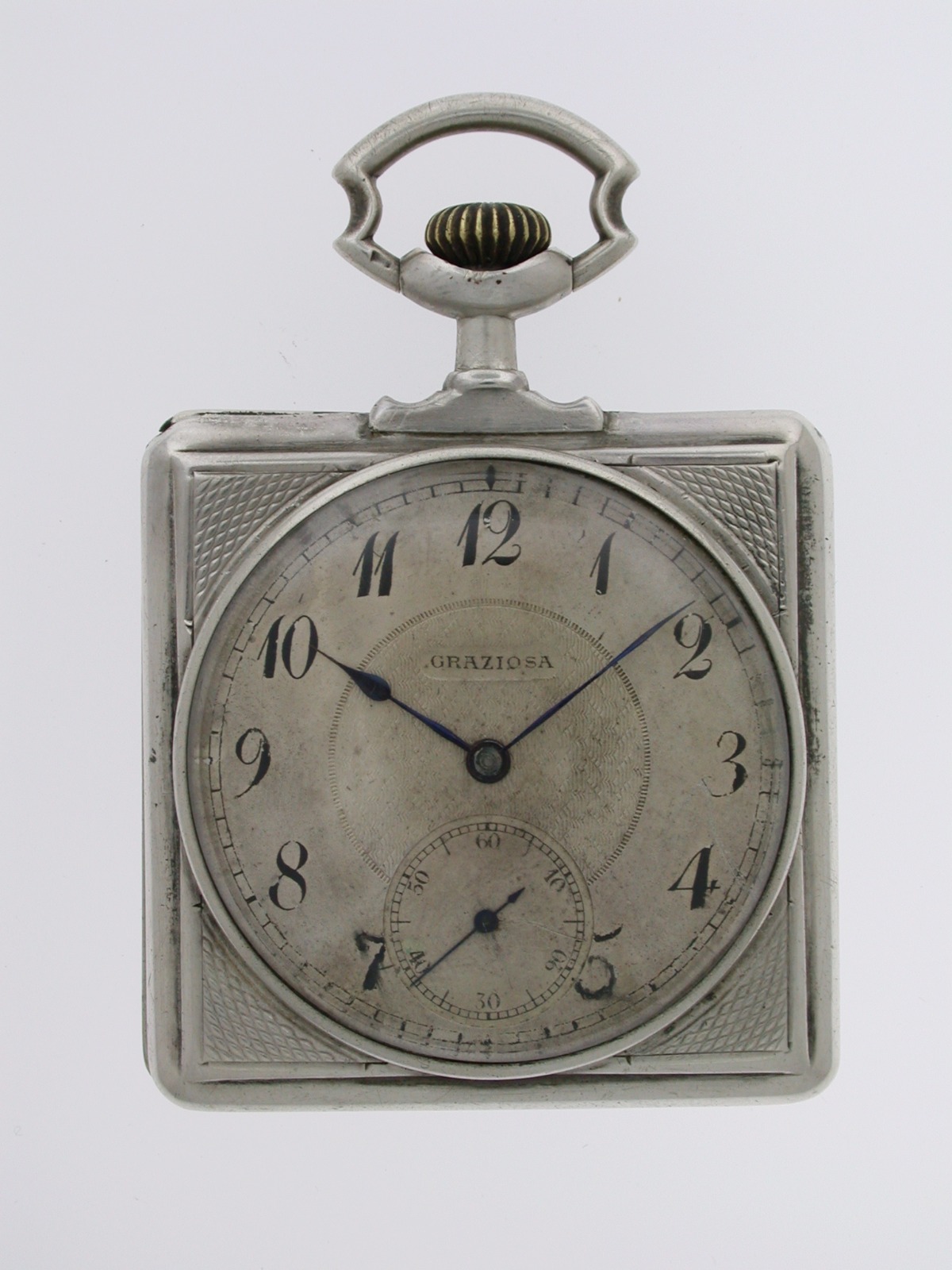 Rare Silver Square Open Face Pocket Watch Swiss 1930
