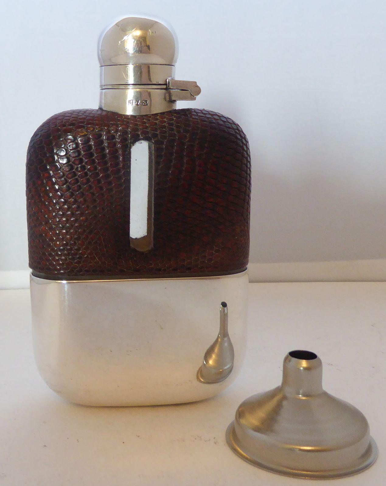 Rare Small 1930's Silver Plate Snake Skin Bound Glass Hip Flask James Dixon