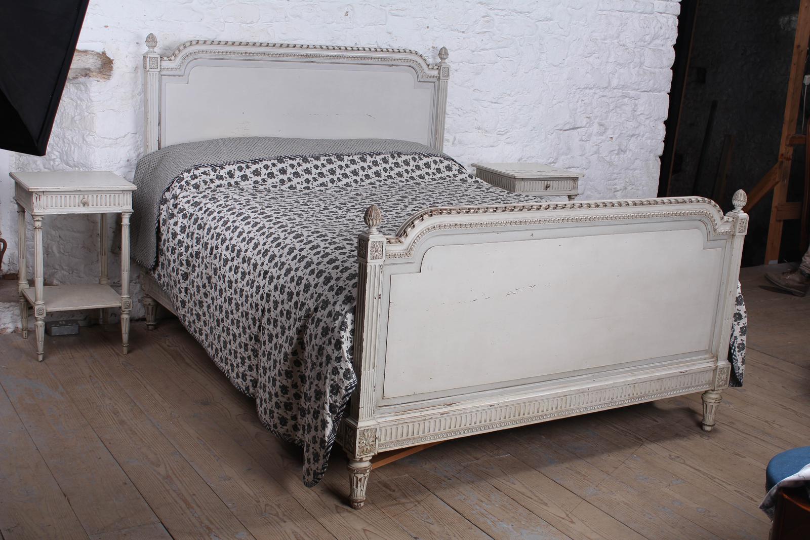 Rare Small Super King Empire French Painted Bed & Bedsides