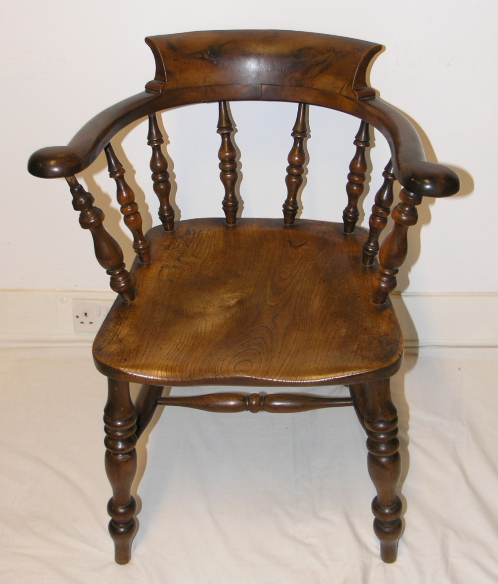 Rare Solid Yew-Wood Victorian Smokers Chair c.1850