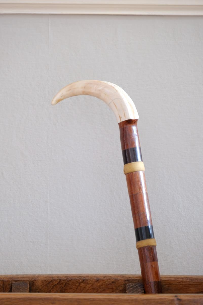 Rare Specimen Wood Walking Stick & African Warthog Tusk Handle