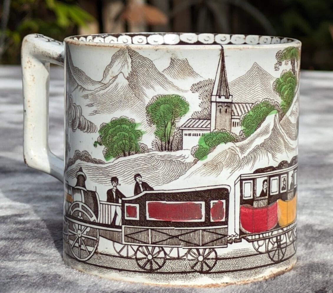 Rare Staffordshire Pottery Mug Railway Commemorative Antique 19th Century c.1835