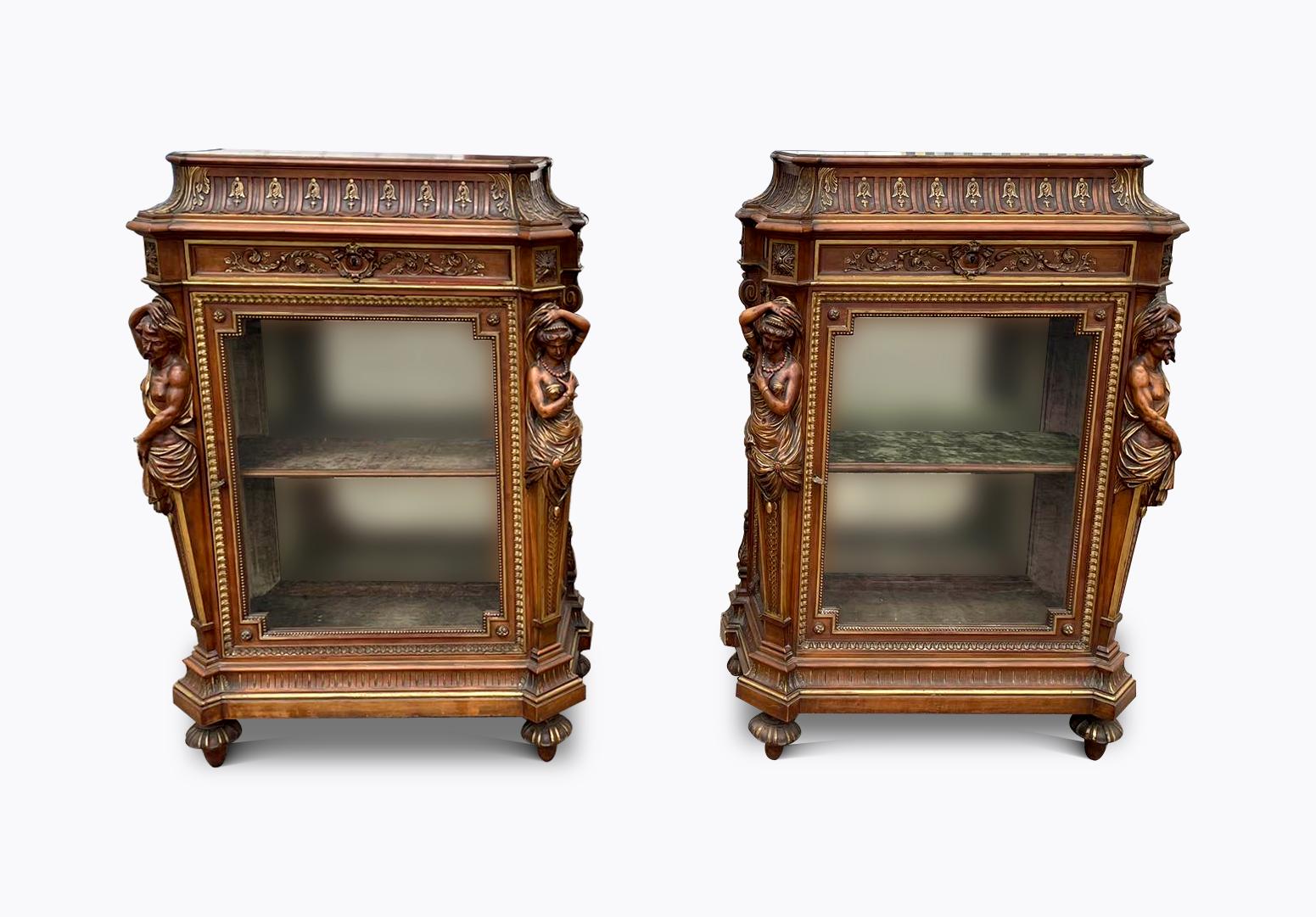 Rare Stunning Pair of 19th Century Carved Walnut & Gilt Side Cabinets