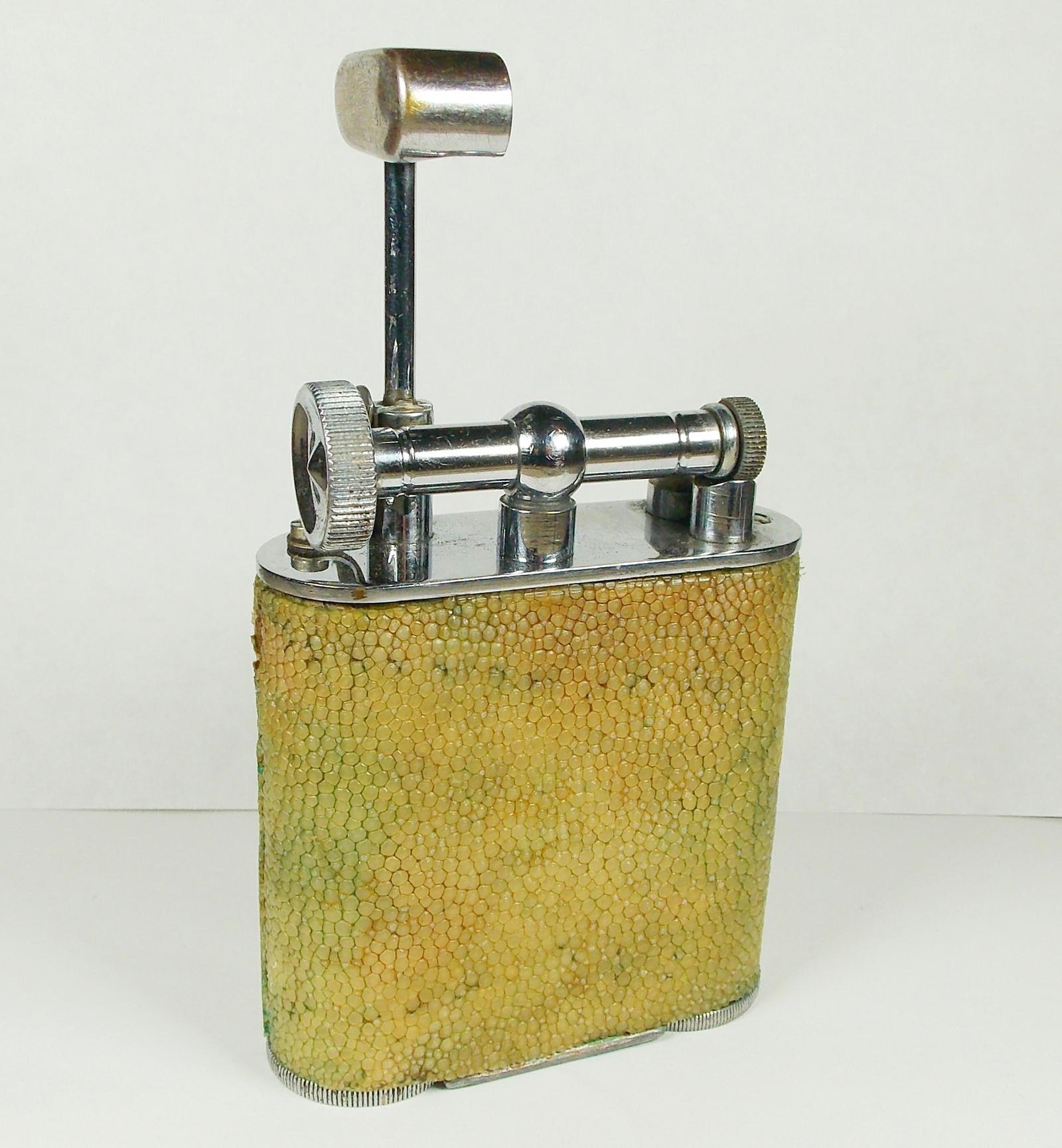 Rare Stunning Unique Art Deco Shagreen Lift Arm Lighter c.1930